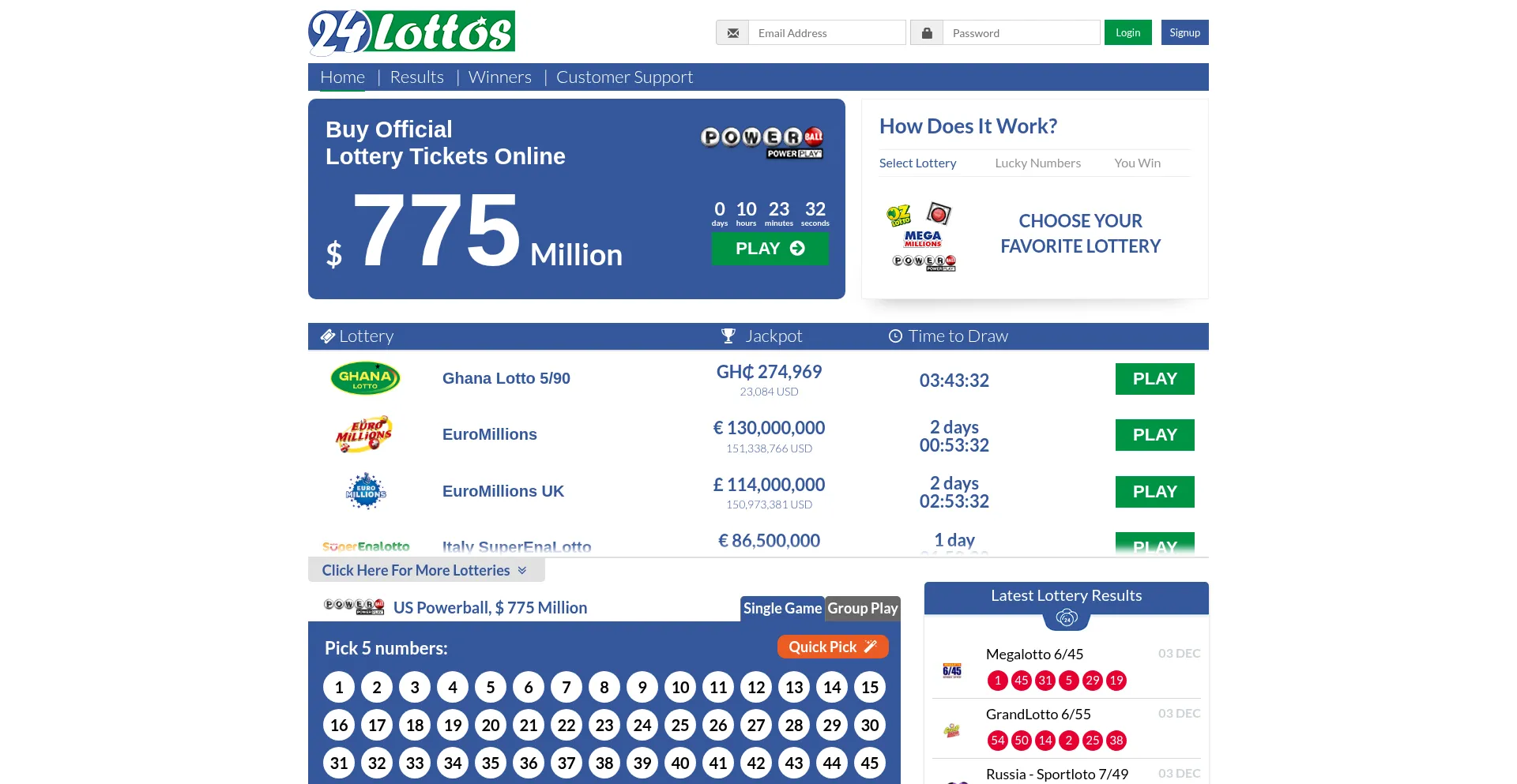 Play Lotto Online | Lottery Results | 24Lottos.com