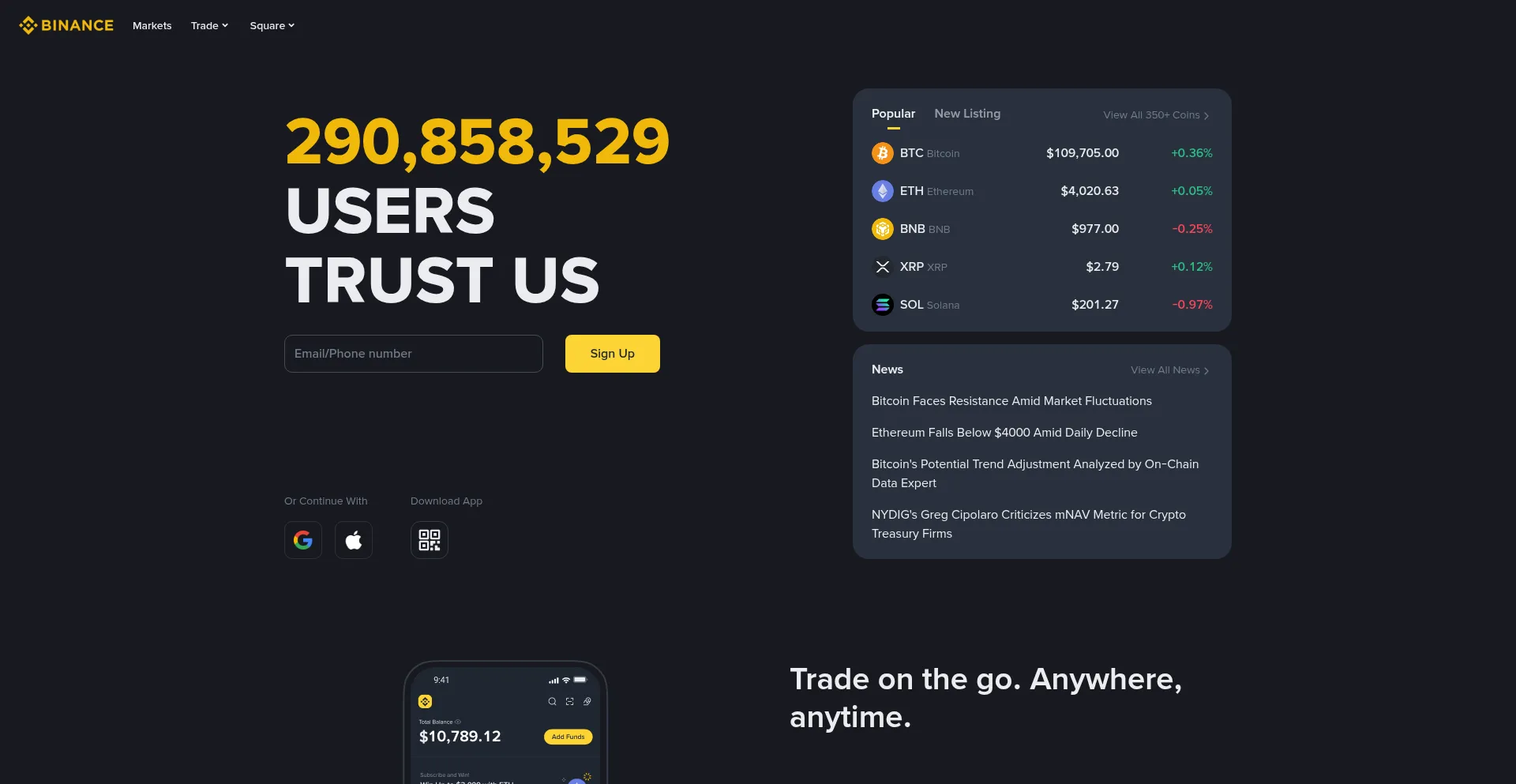 Binance, the largest crypto exchange by trading volume, serves 250M+ users in 180+ countries. With 350+ listed altcoins, it is the world's leading crypto exchange.