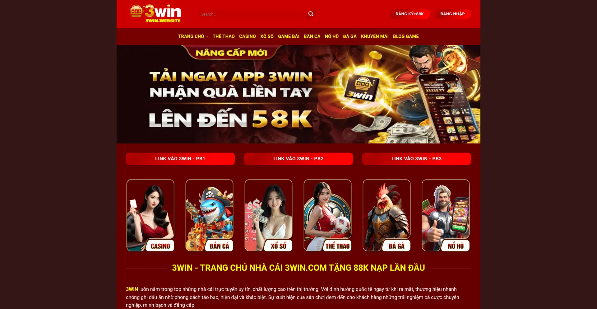 3win - Trang Chủ Nhà Cái 3win.com Tặng 88K Nạp Lần Đầu