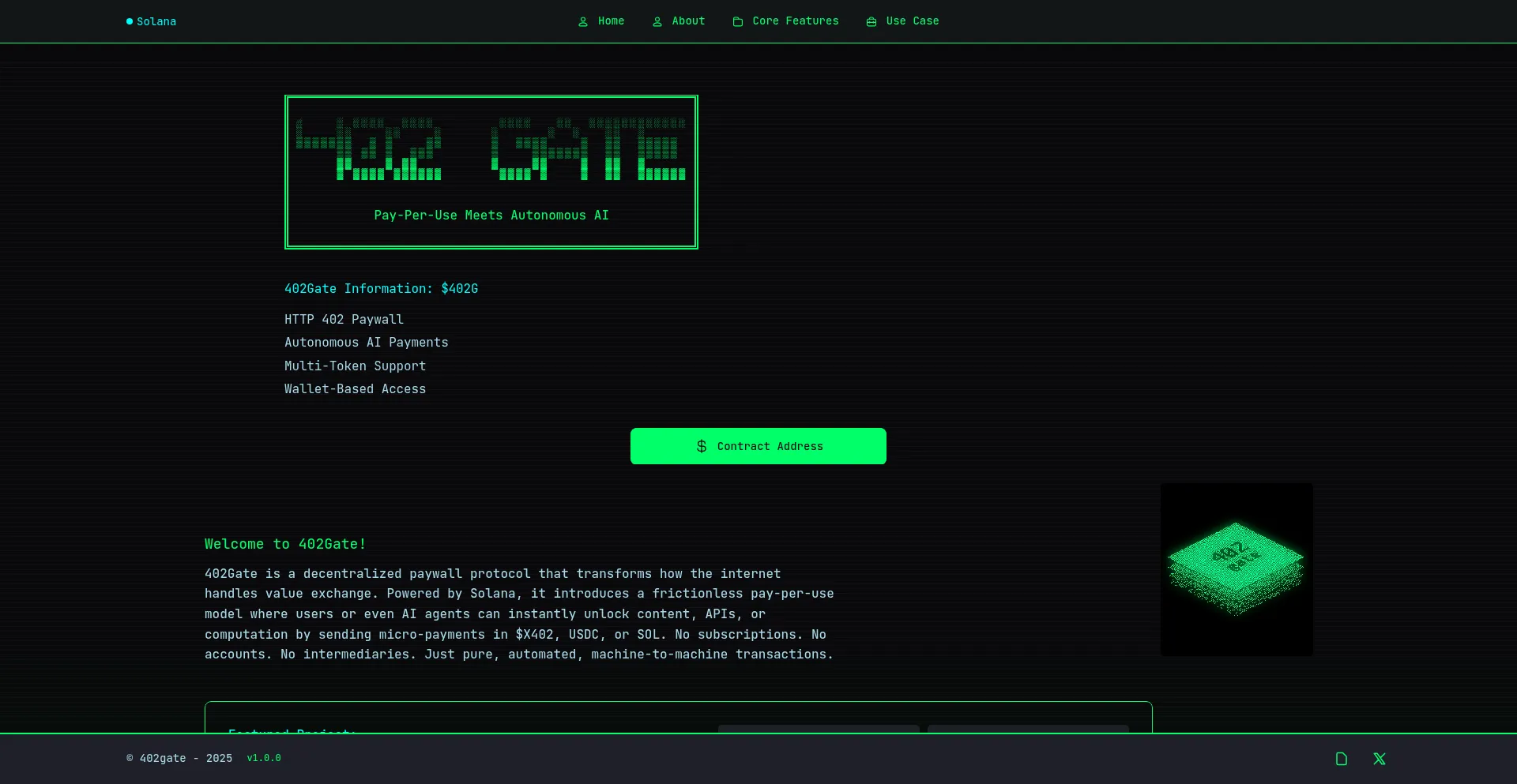 402Gate brings HTTP 402 Payment Required to Web3. Powered by $402G and Solana, it enables instant, decentralized, and autonomous micropayments for APIs, AI, and digital services.