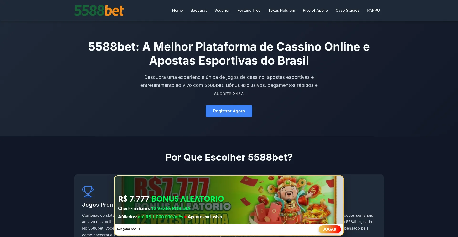 5588bet oferece os melhores jogos de cassino online, apostas esportivas e entretenimento ao vivo para jogadores brasileiros. Bônus exclusivos e pagamentos rápidos.