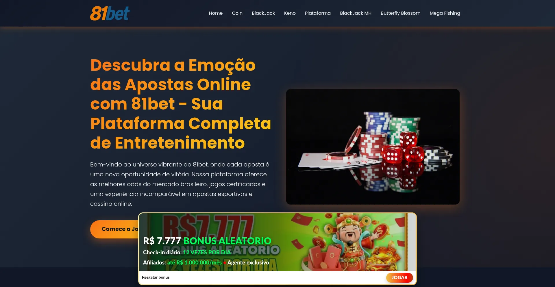 81bet oferece a melhor experiência em apostas esportivas, cassino ao vivo, slots e jogos online no Brasil. Bônus exclusivos e jogos certificados.