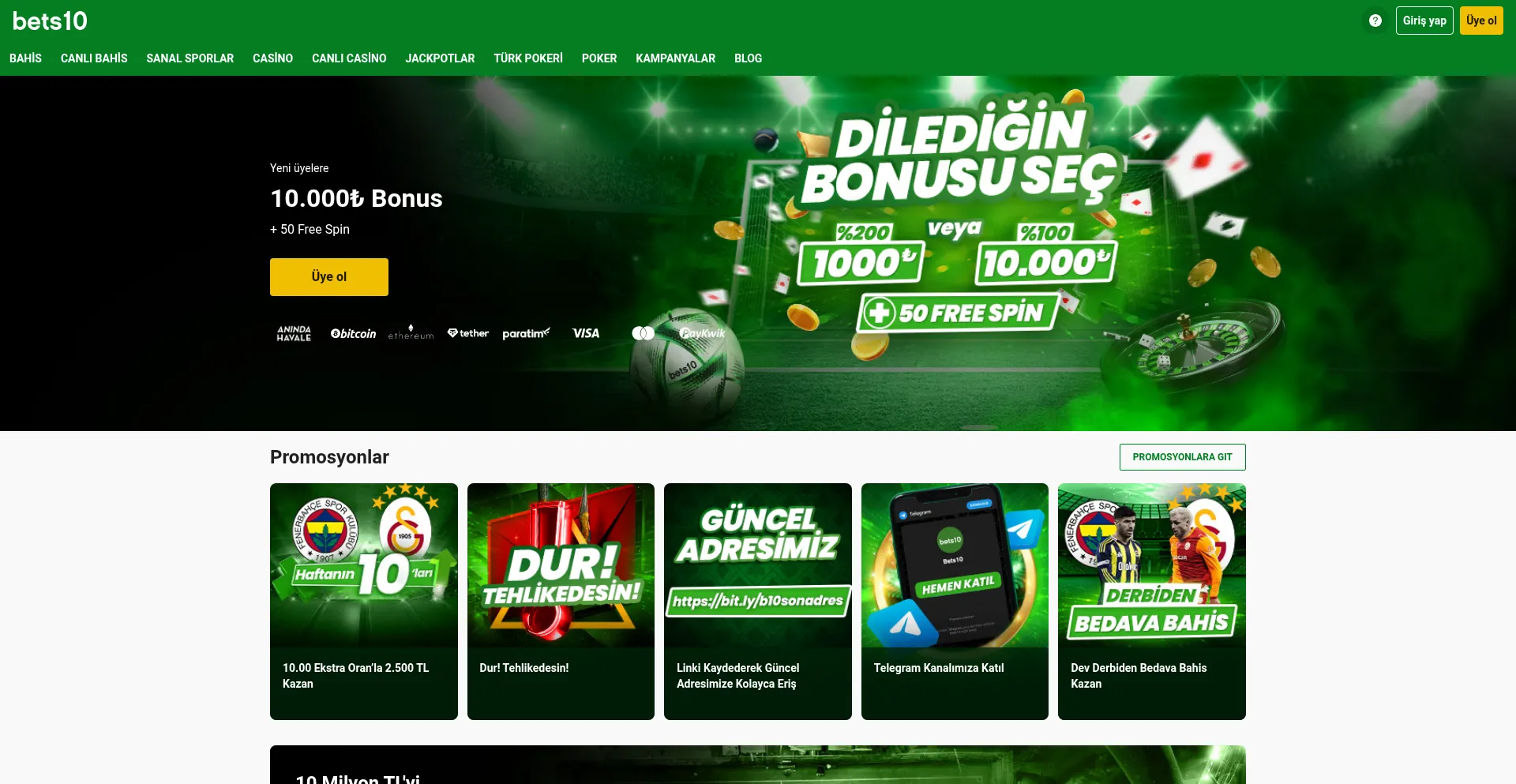Bets10 ile güvenilir bahis ve casino deneyimi yaşayın. Türkiye'nin en köklü ve tecrübeli online oyun platformunda kazanmaya başlayın!