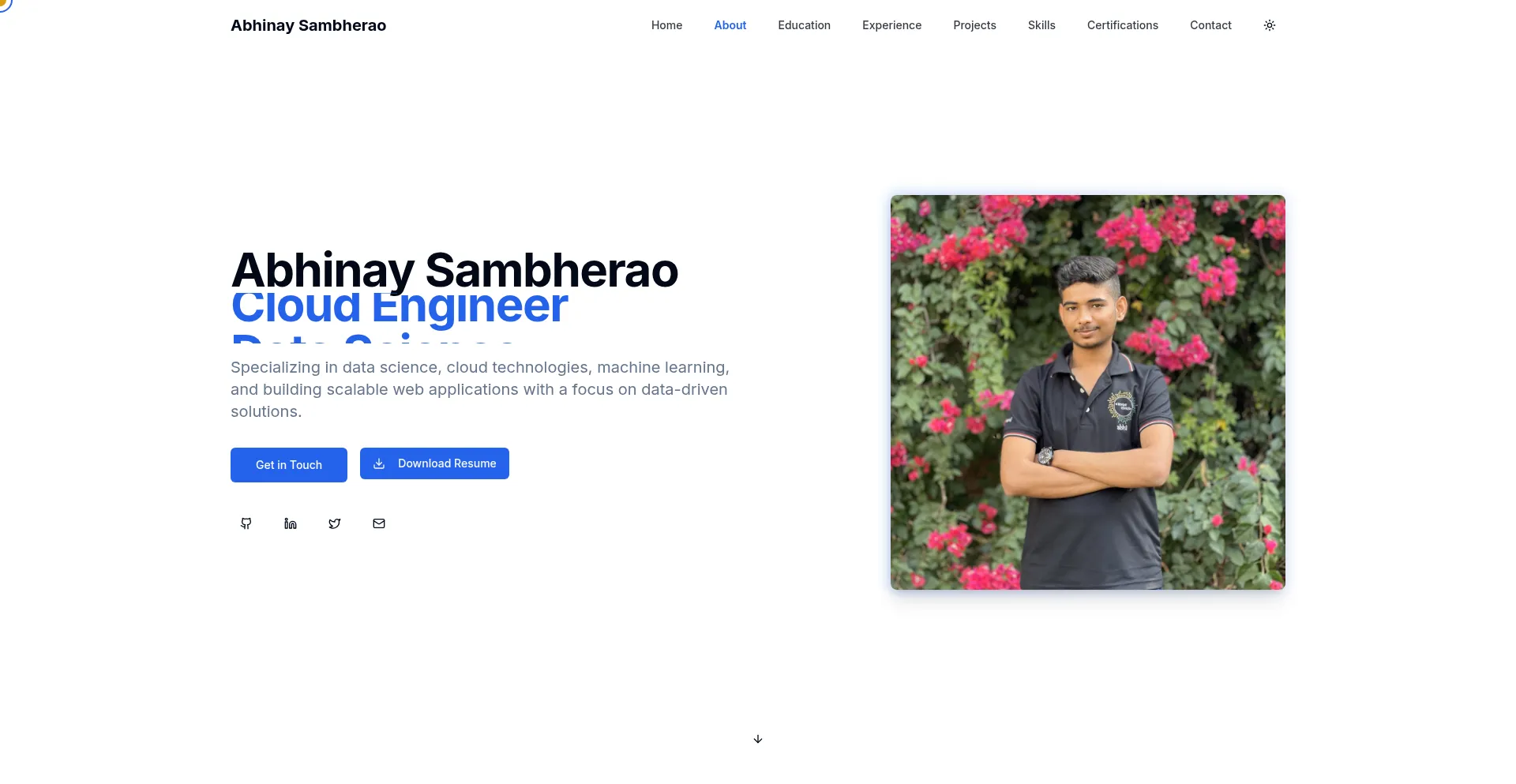 Professional portfolio of a Full-Stack Developer and Cloud Engineer specializing in data science and cloud technologies.