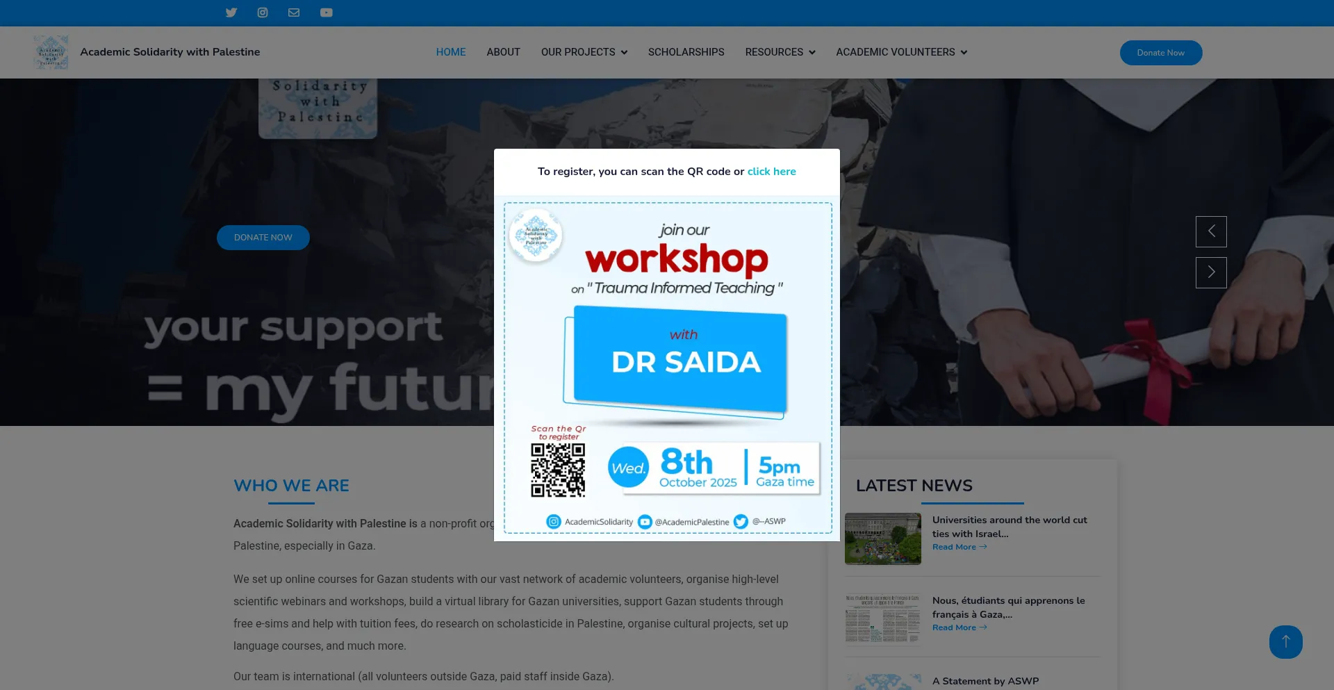A presença de links de redes sociais no site indica que academicsolidaritywithpalestine.org mantém contas oficiais em redes sociais, o que é um sinal positivo de credibilidade e engajamento.