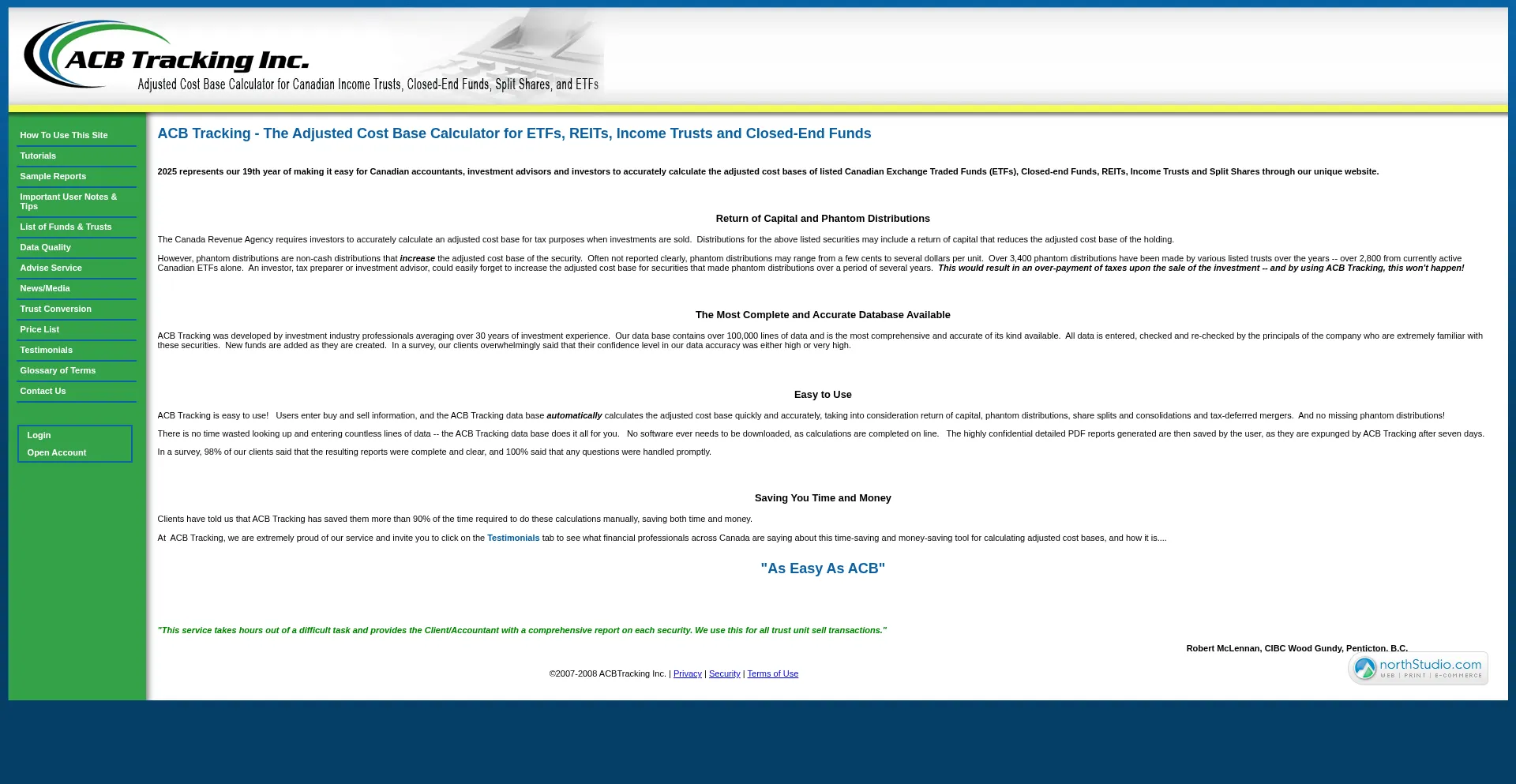 ACB Tracking provides an Adjusted Cost Base Calculator web application for Canadian income trusts and closed end funds.