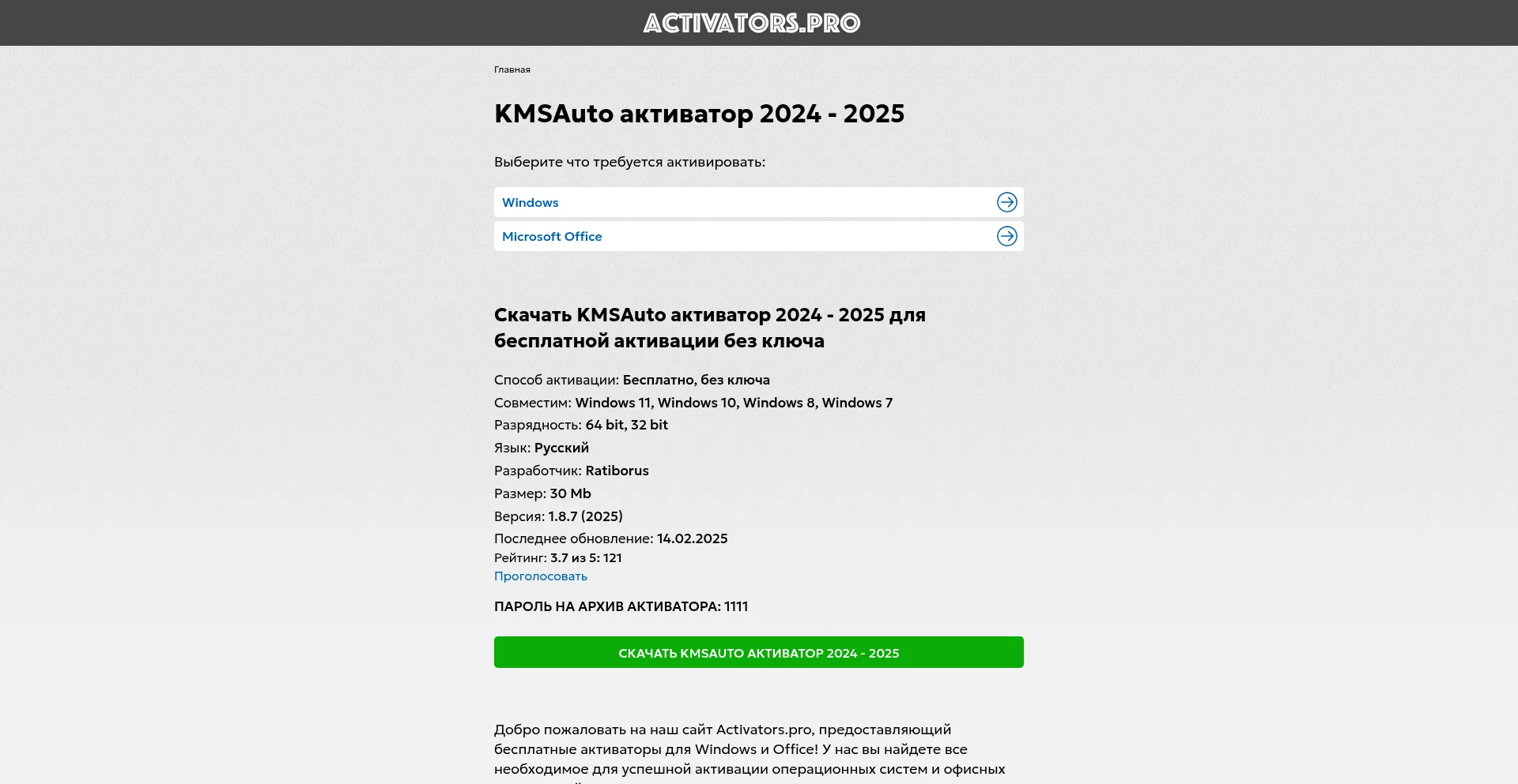 KMSAuto активатор 2024 - 2025 | Скачать бесплатно - activators.pro