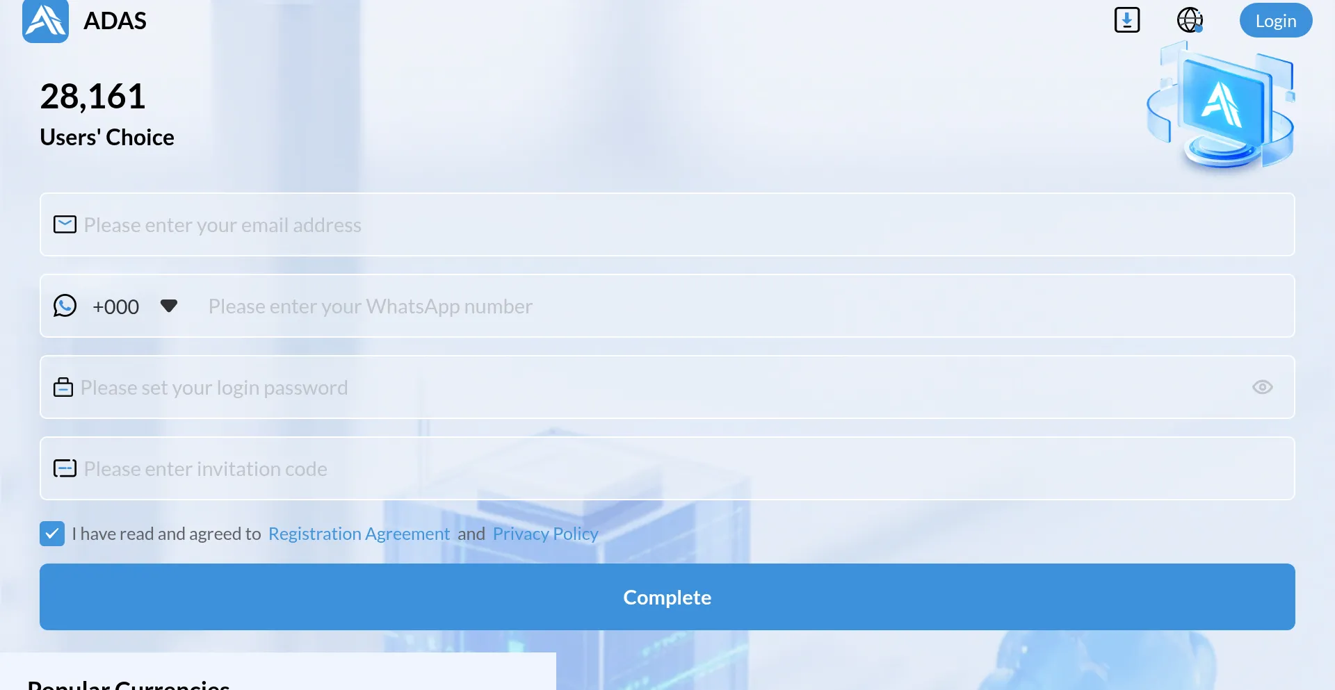 Cryptocurrency Financial Service Registration Form Crypto Airdrop Web Application UniApp Framework Long Term SSL Certificate Long Term Domain Established Domain