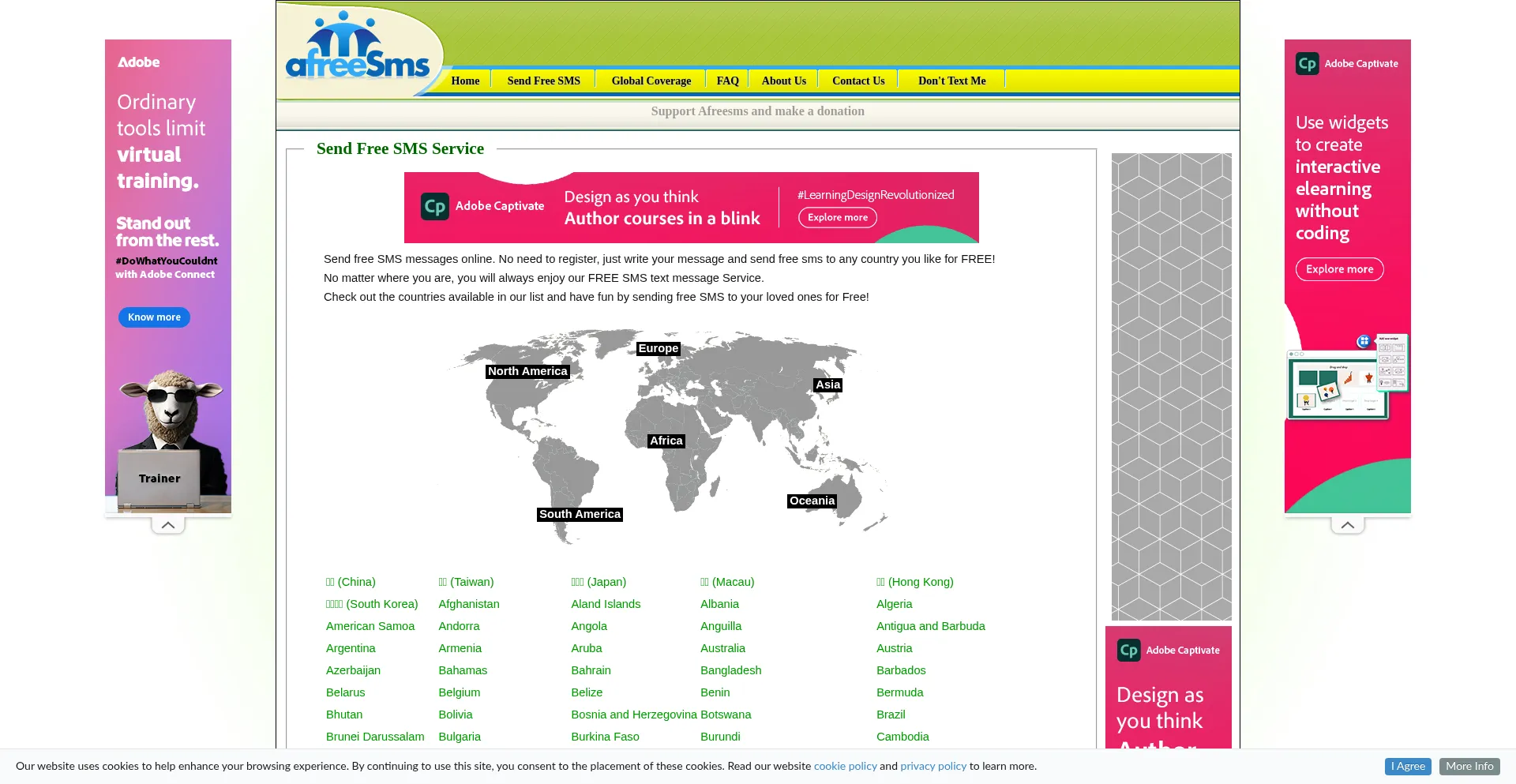 O site implementa mecanismos de consentimento de cookies em conformidade com regulamentações de privacidade como GDPR ou CCPA. Isso demonstra que afreesms.com adere a padrões de proteção de dados e fornece aos usuários controle sobre práticas de coleta de dados pessoais.