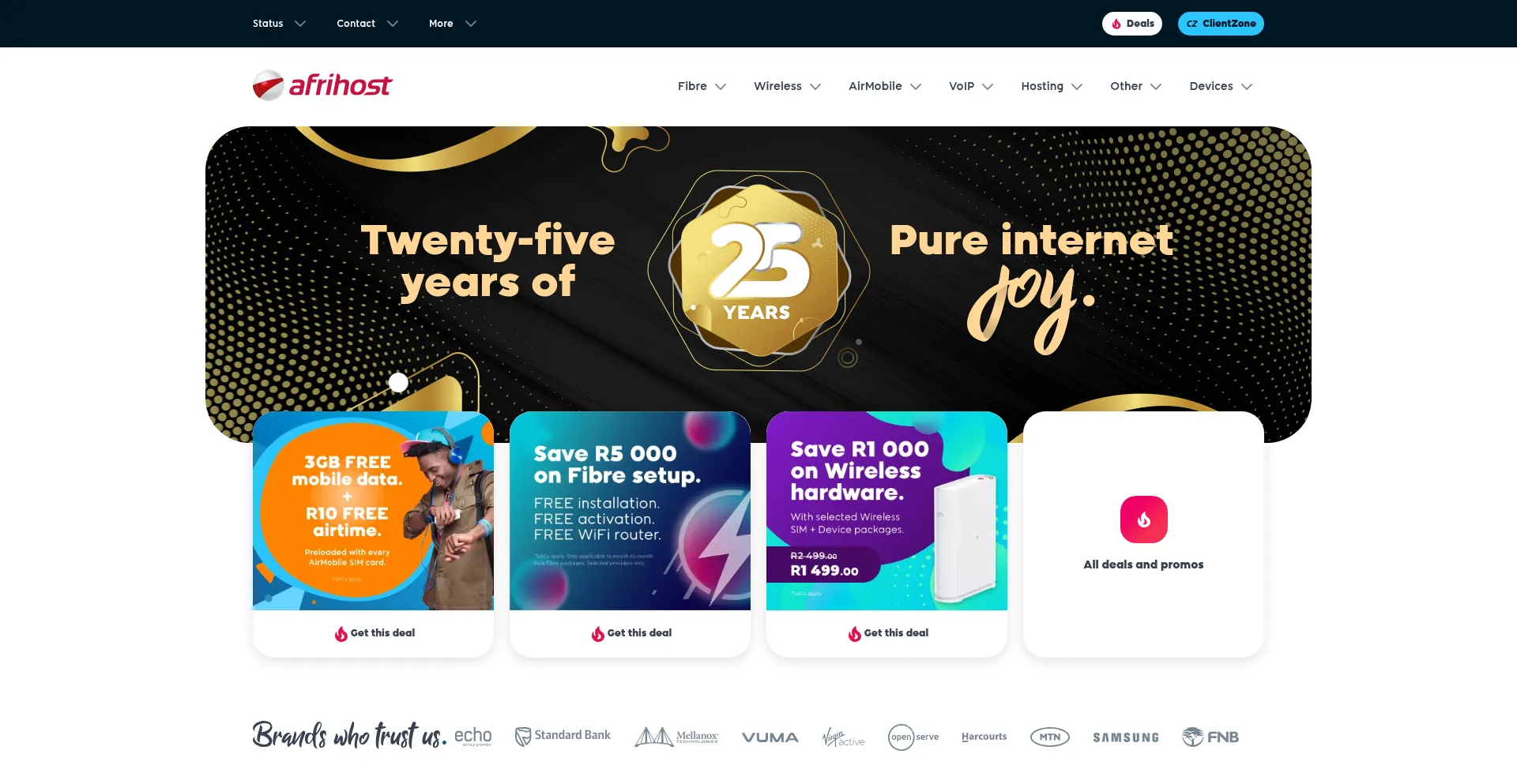 Pure Internet Joy | Fibre, LTE, 5G, Mobile, DSL, VoIP and Web Hosting | Afrihost
