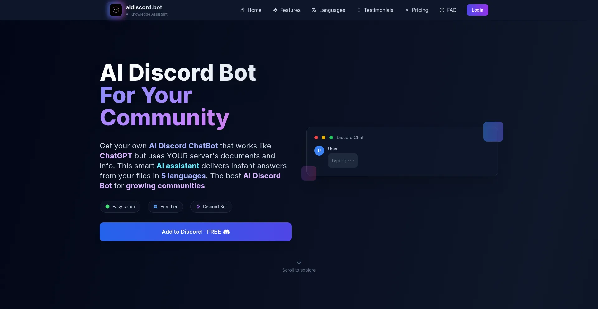 AI Discord Chatbot for Instant Q&A and Community Support | aidiscord.bot
