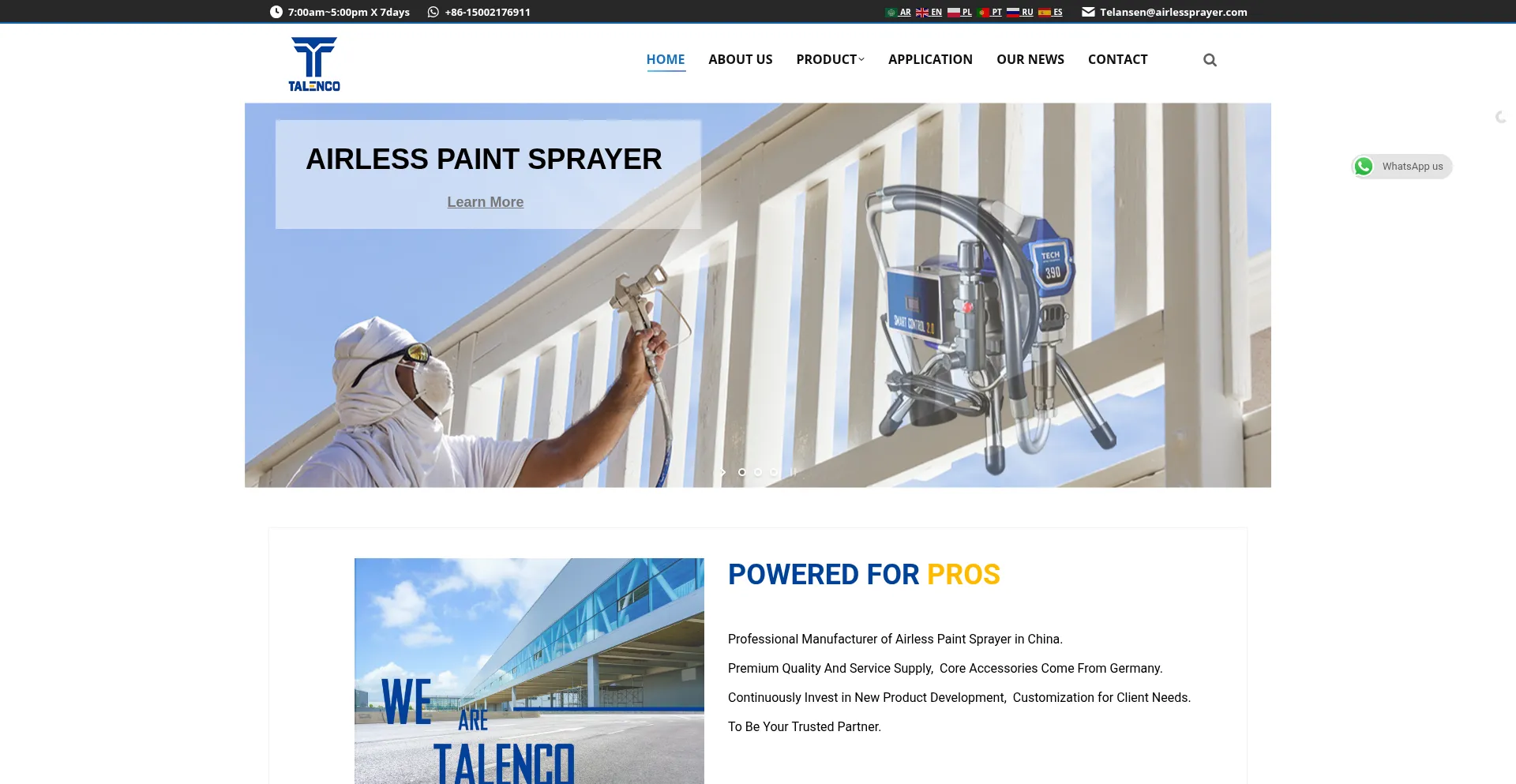 Talenco are professional producer of electric airless paint sprayer,pneumatic airless paint sprayer, texture sprayer, road line striper, PU foam sprayer