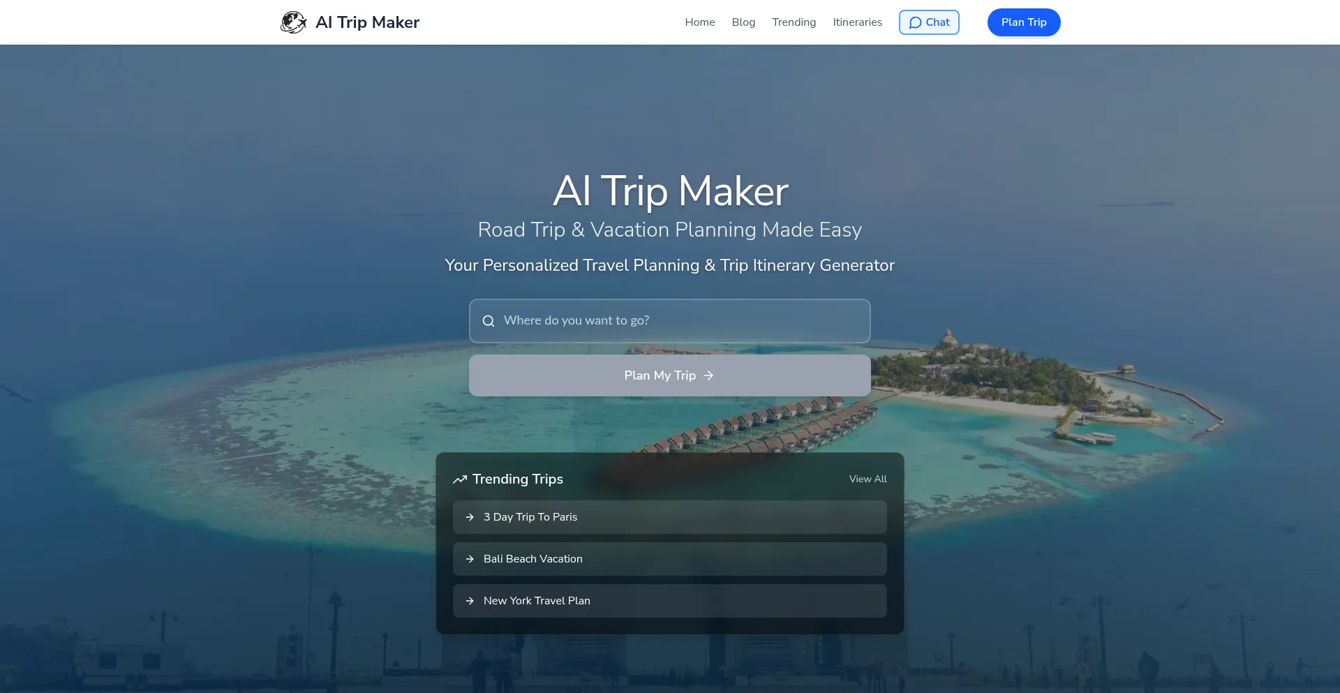 Plan perfect road trips and vacations with AI Trip Maker. Our smart travel planning tool creates personalized itineraries with attractions and hidden gems for any destination.