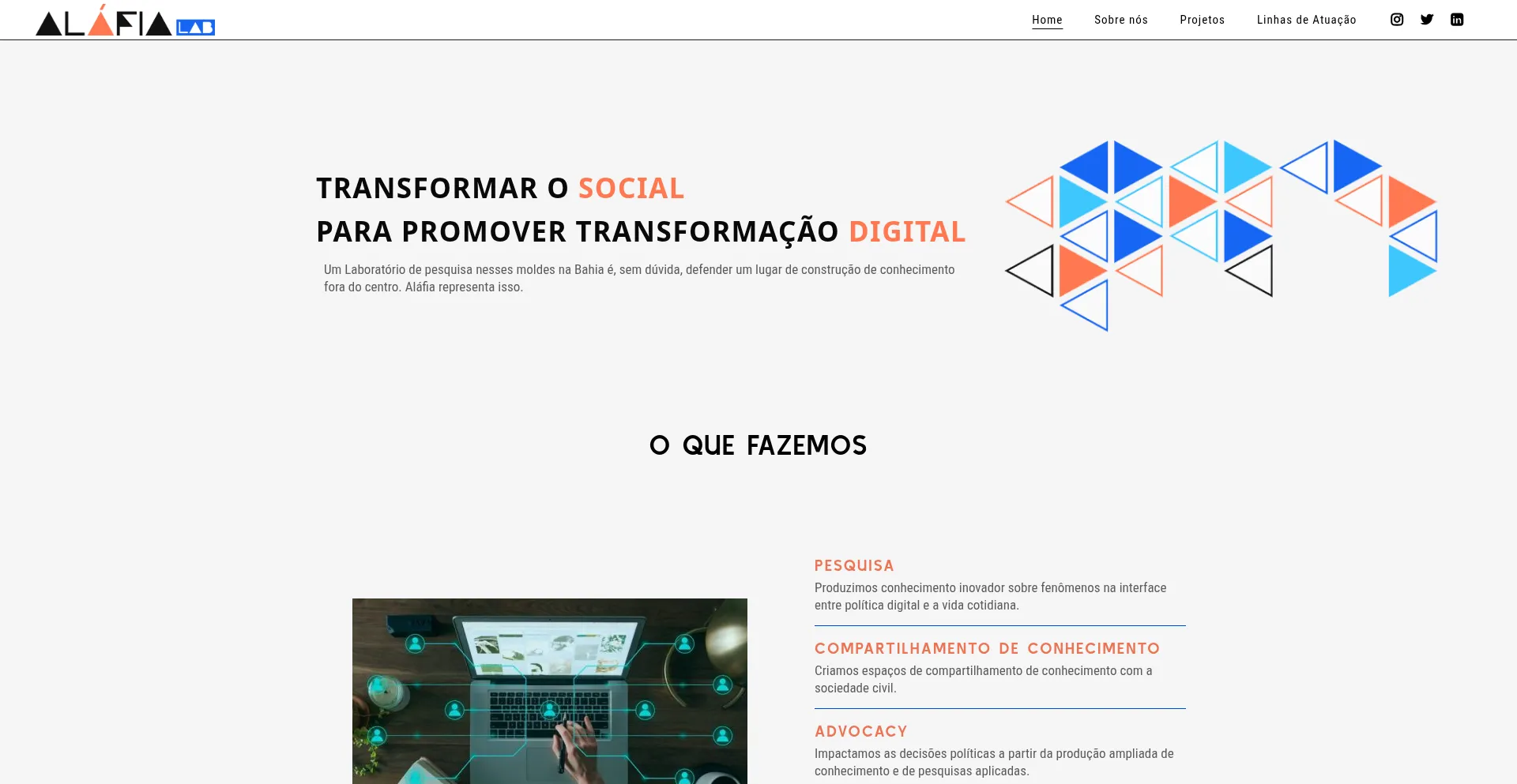 A presença de links de redes sociais no site indica que alafialab.org mantém contas oficiais em redes sociais, o que é um sinal positivo de credibilidade e engajamento.