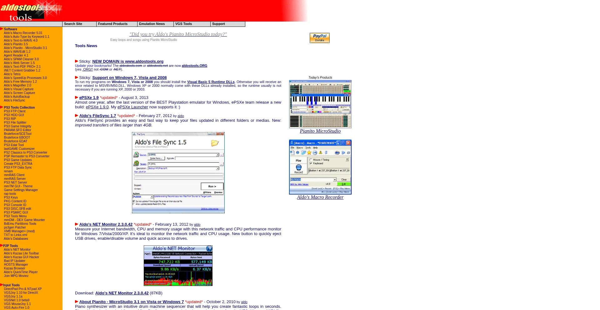 www.aldostools.org - Playstation Emulation Tools, Piano and Multimedia Software, Macro Recorder, Text-to-Speech, Memory Manager, Magnifier, Freeware, PDF Development Tool, Productivity Tools by Aldo Vargas