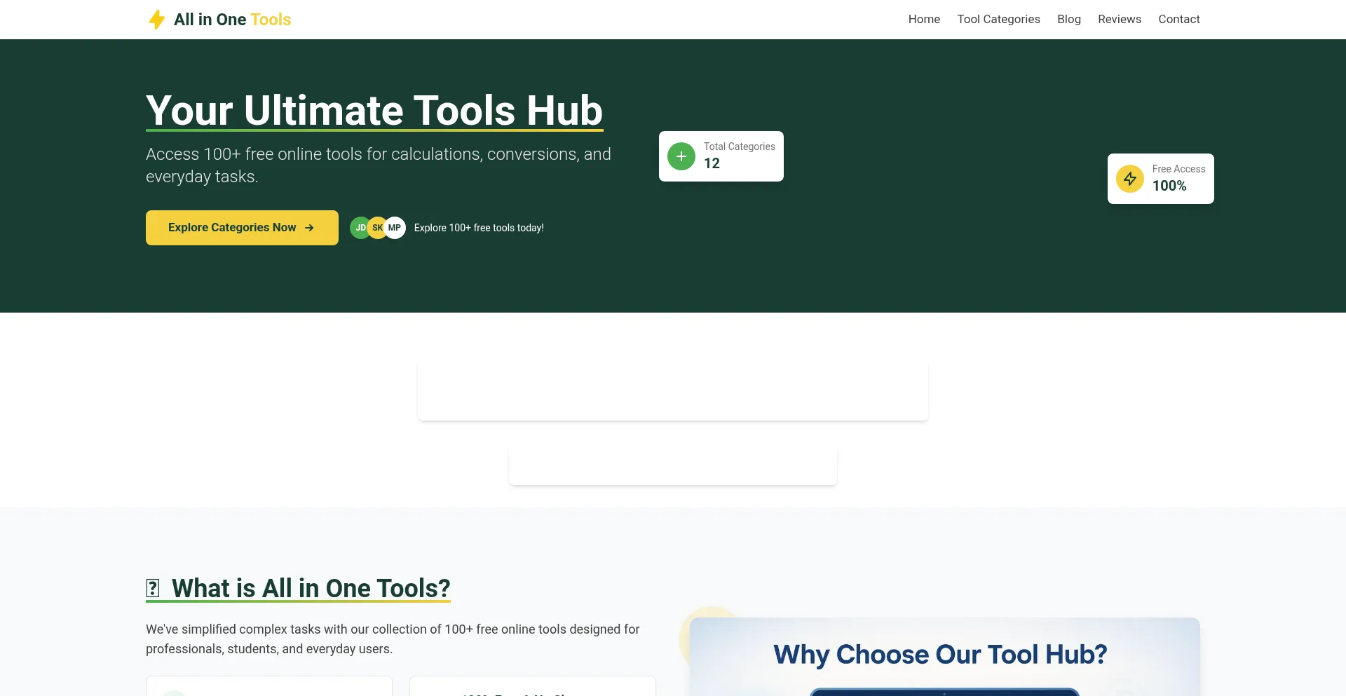 Explore All in One Tools complete collection of 100+ free online tools for calculations, conversions, PDF toolkits, and more.