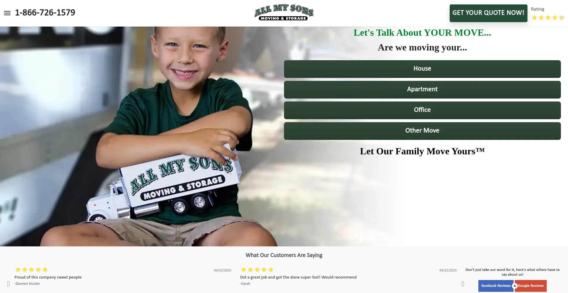 We are a nationwide moving company. All My Sons Moving has a mover in your area. Count on All My Sons Moving & Storage for local moves, long-distance moves, office relocation, p...