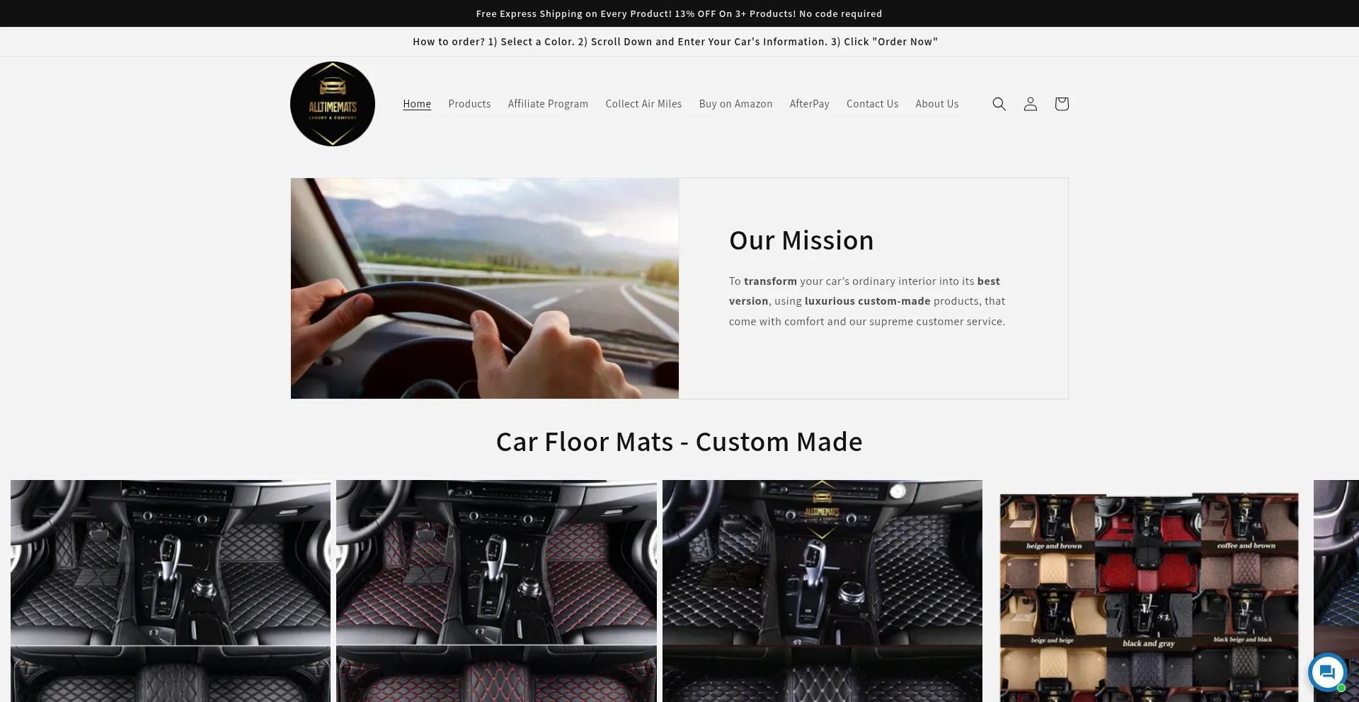 At All Time Mats we are committed to luxury and comfort. We sell luxurious car items, such as: floor mats/car mats, trunk liners, seat covers, steering wheel covers. Order from ...