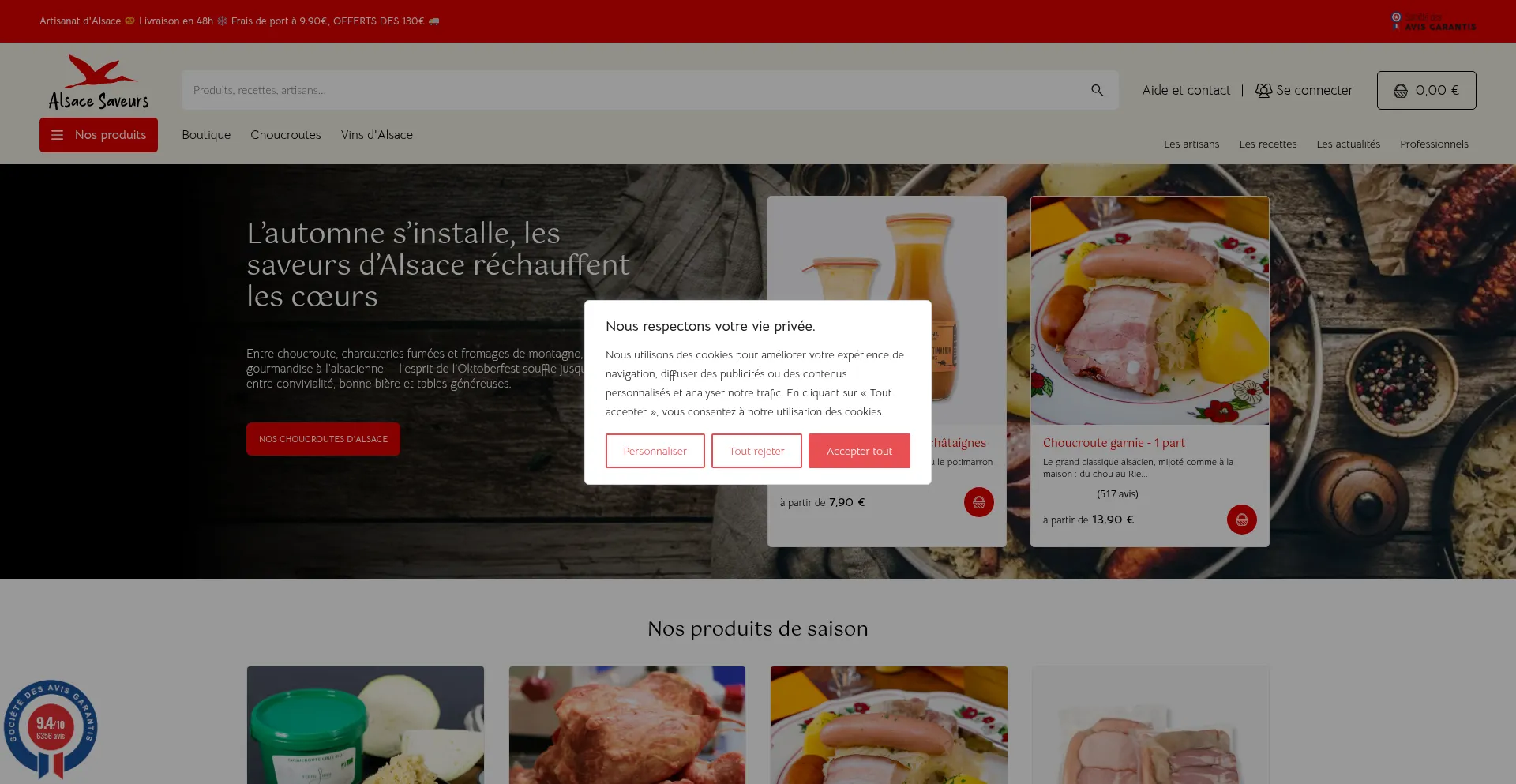 Commandez en ligne les meilleures spécialités alsaciennes chez Alsace Saveurs. Produits locaux et artisanaux. Livraison rapide. Fraîcheur garantie.