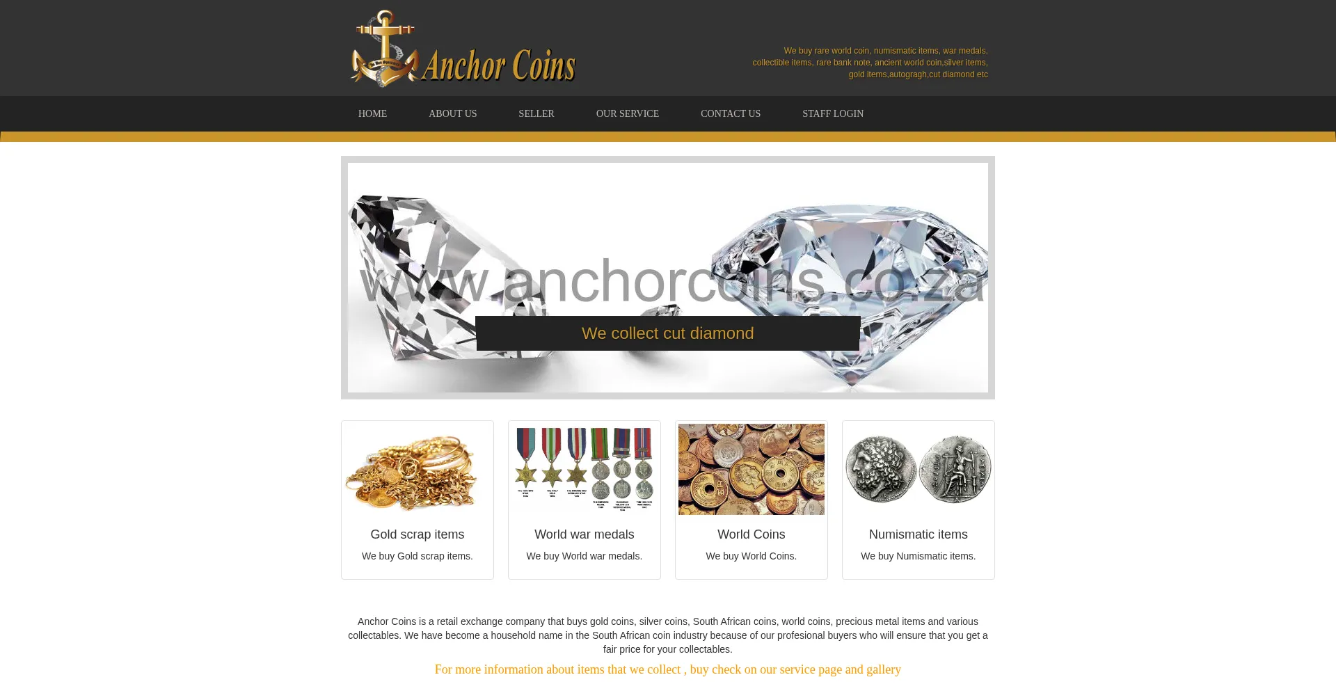 Anchor Coins is a retail exchange company that buys gold coins, silver coins, South African coins, world coins, precious metal items and various collectables.