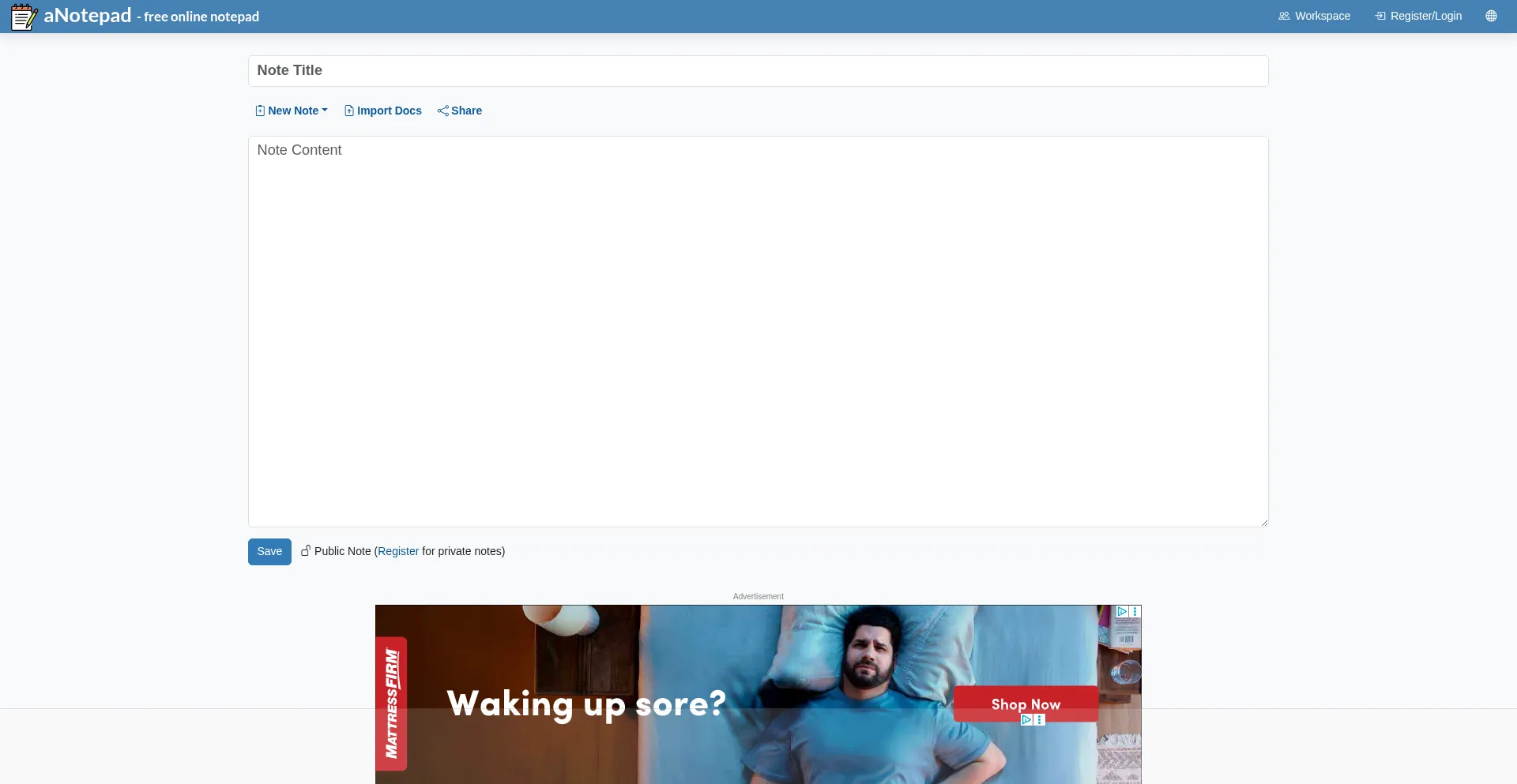 aNotepad.com is your everyday online notepad. You can take notes and share notes online without having to login. You can use a rich text editor and download your note as PDF or ...