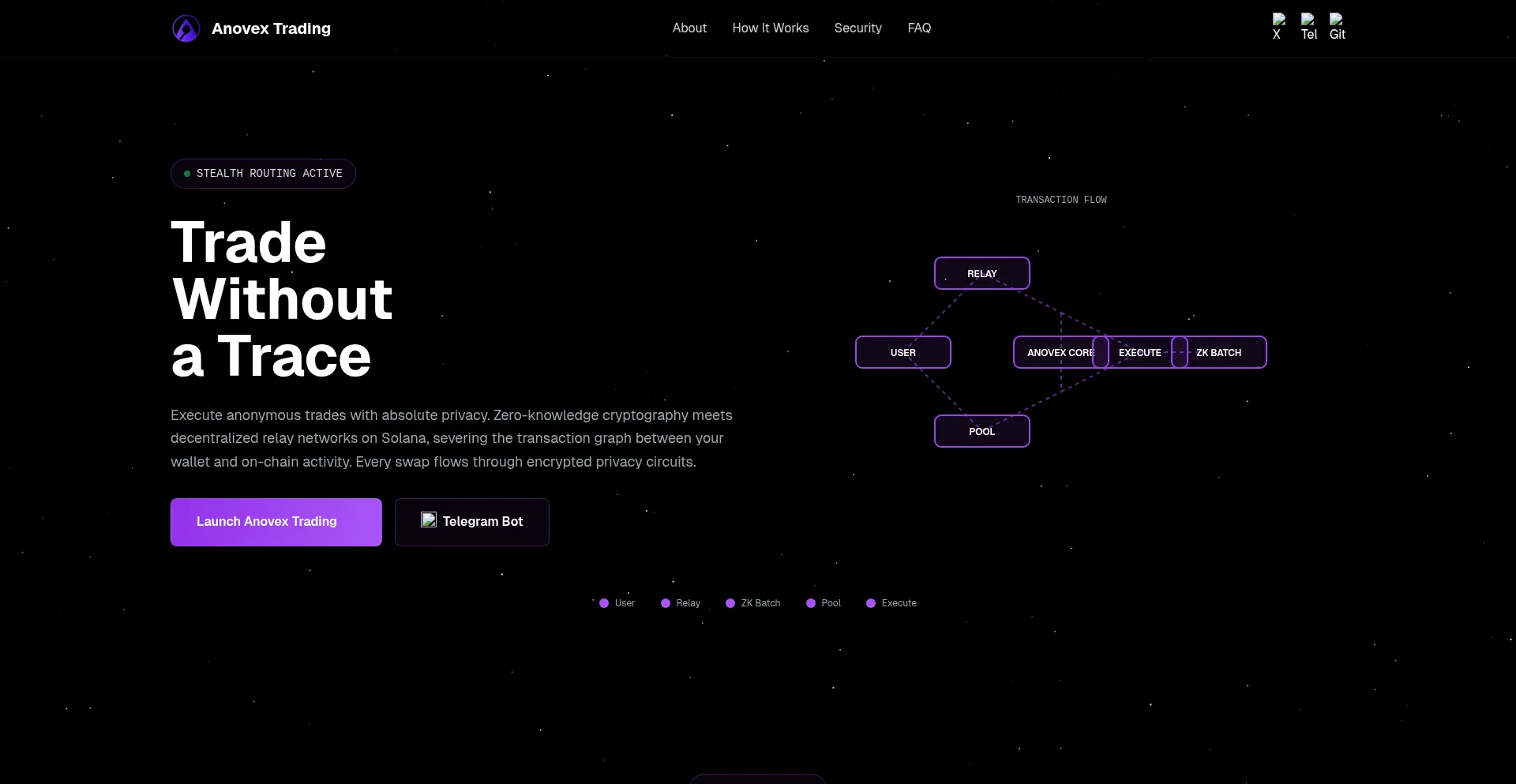 Anovex Trading is the world's first truly untrackable decentralized exchange on Solana. Trade with complete anonymity using ZK-proof batching, stealth execution, and MEV-resista...