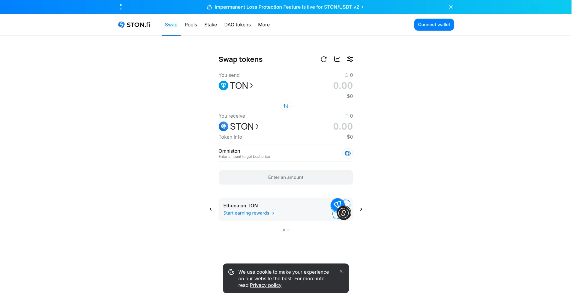 Swap crypto tokens on STON.fi
