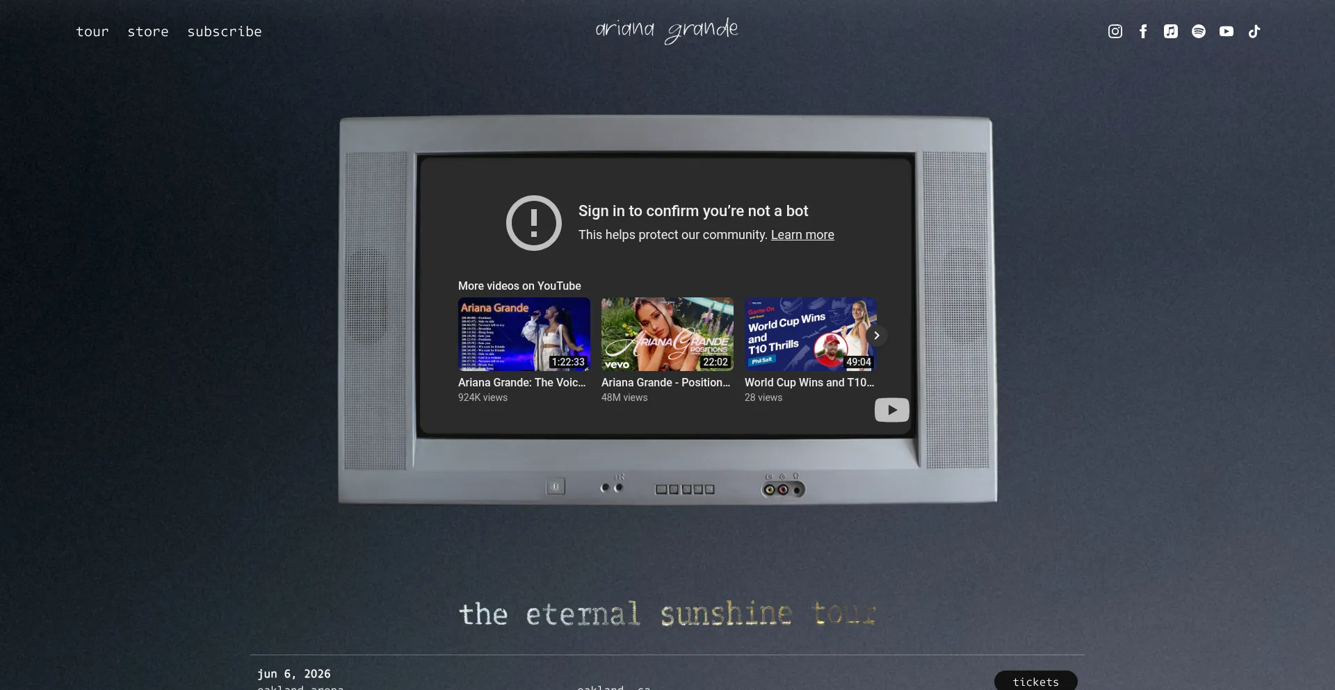 A presença de links de redes sociais no site indica que arianagrande.com mantém contas oficiais em redes sociais, o que é um sinal positivo de credibilidade e engajamento.