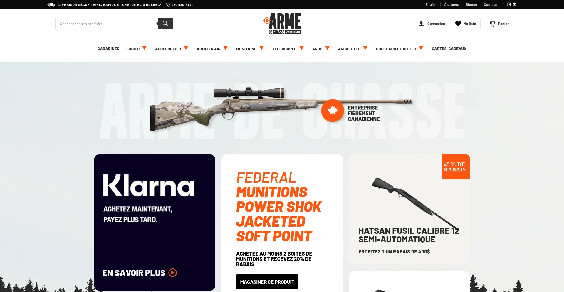 Une boutique spécialisée dans les armes de chasse en ligne ou en magasin: Blainville, Rawdon, Repentigny... Large choix et conseils d'experts.