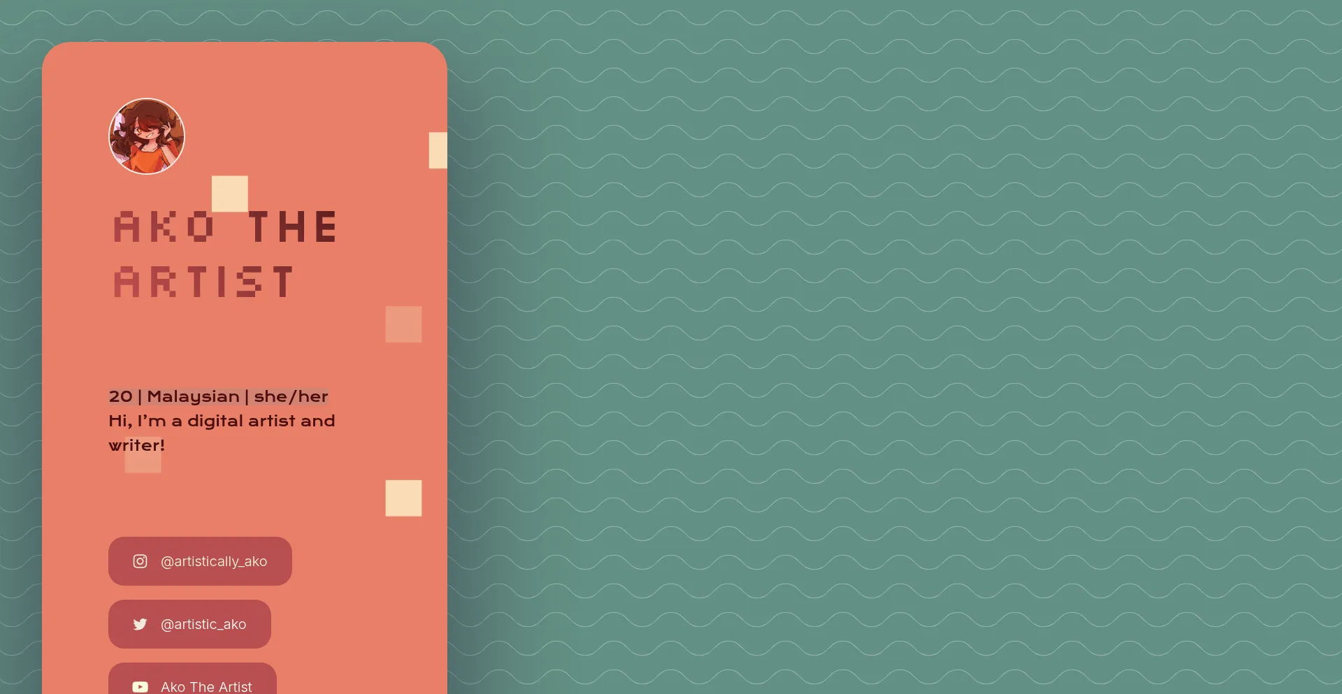 A page of a list of social media handles for Ako The Artist, a hobbyist artist