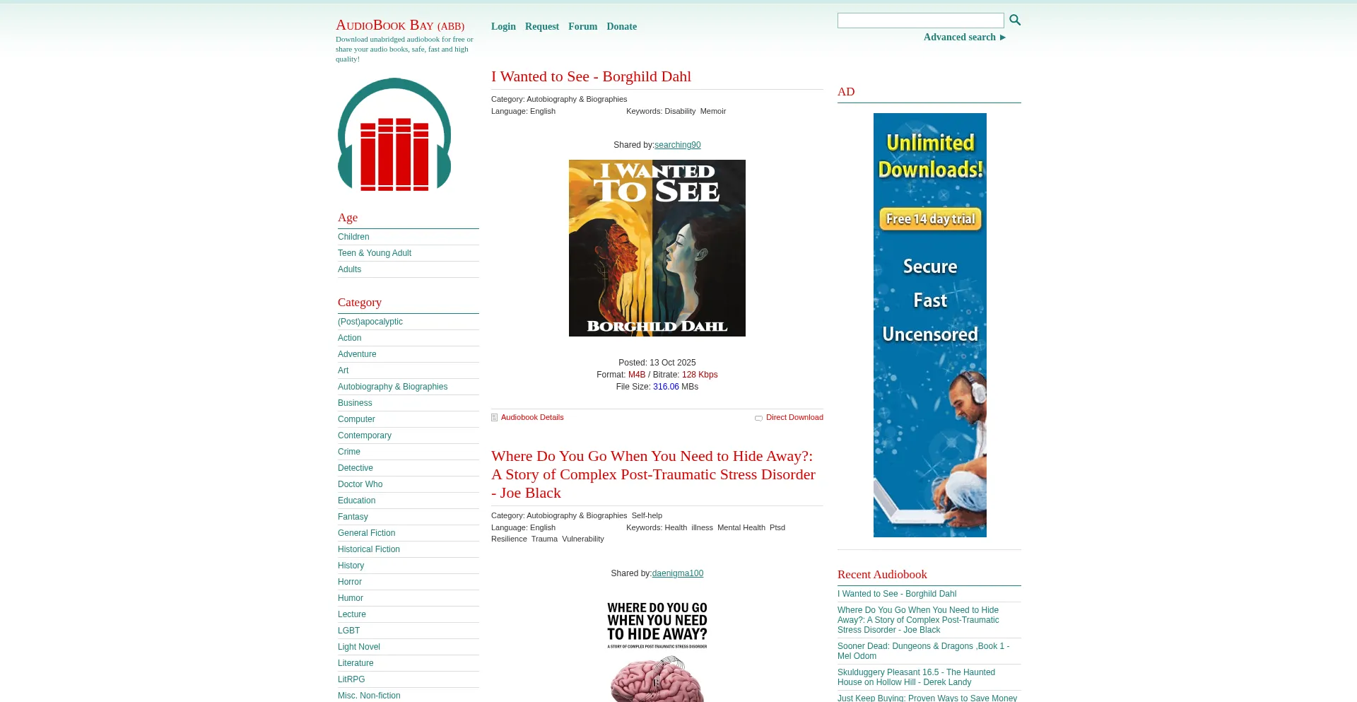 Download unabridged audiobook for free or share your audio books, safe, fast and high quality! Safe to get and share audio book here and downloading speed is great on AudioBook ...