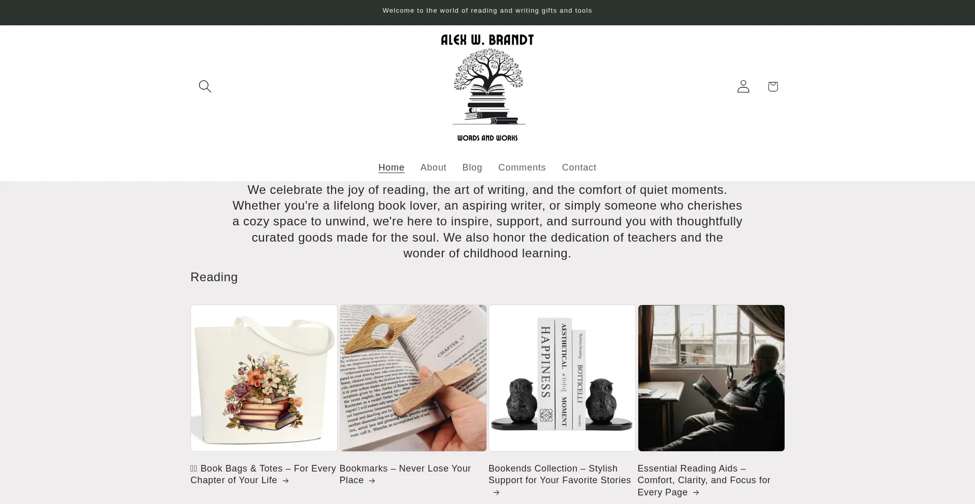 Discover cozy, creative essentials for book lovers and writers at Alex W. Brandt Words and Works. Shop mugs, reading lamps, journals, and more for inspired, comfortable reading ...