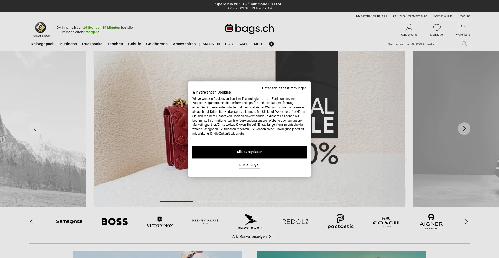 Bags.ch Reisegepäck Shop mit über 150 Marken