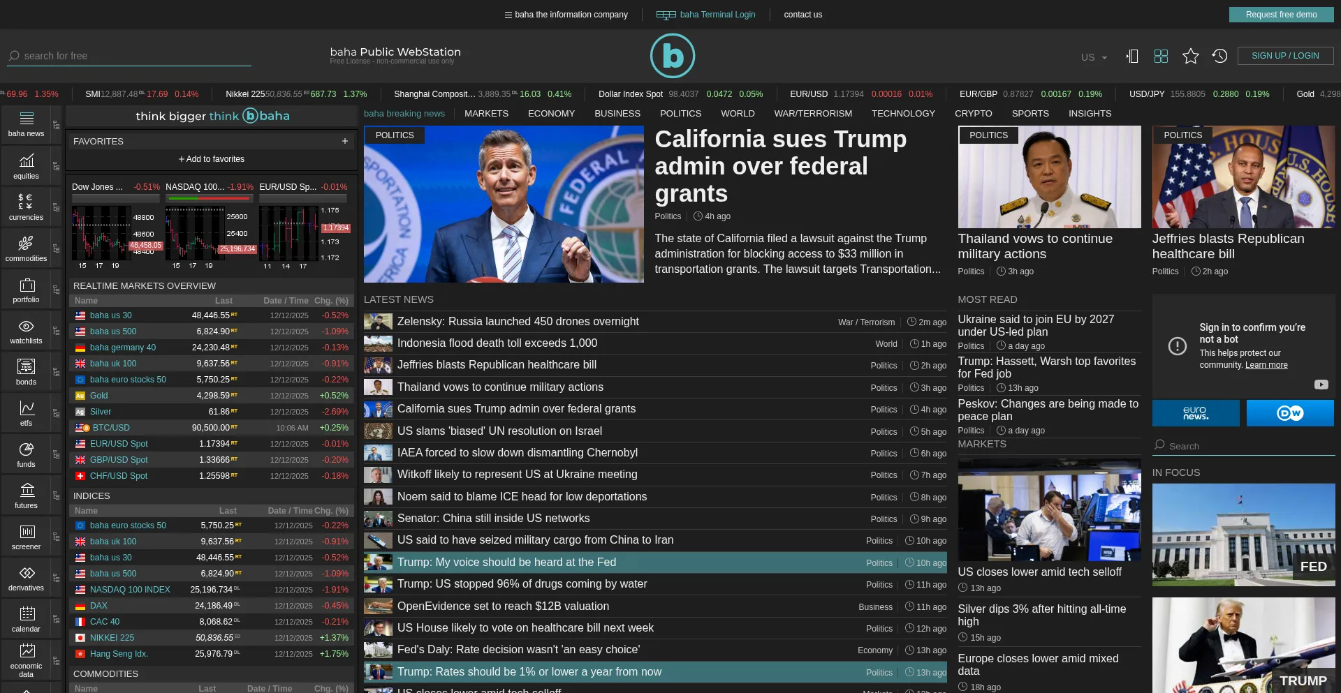 Latest news from several international news sources, with options to filter by region, markets, etc.