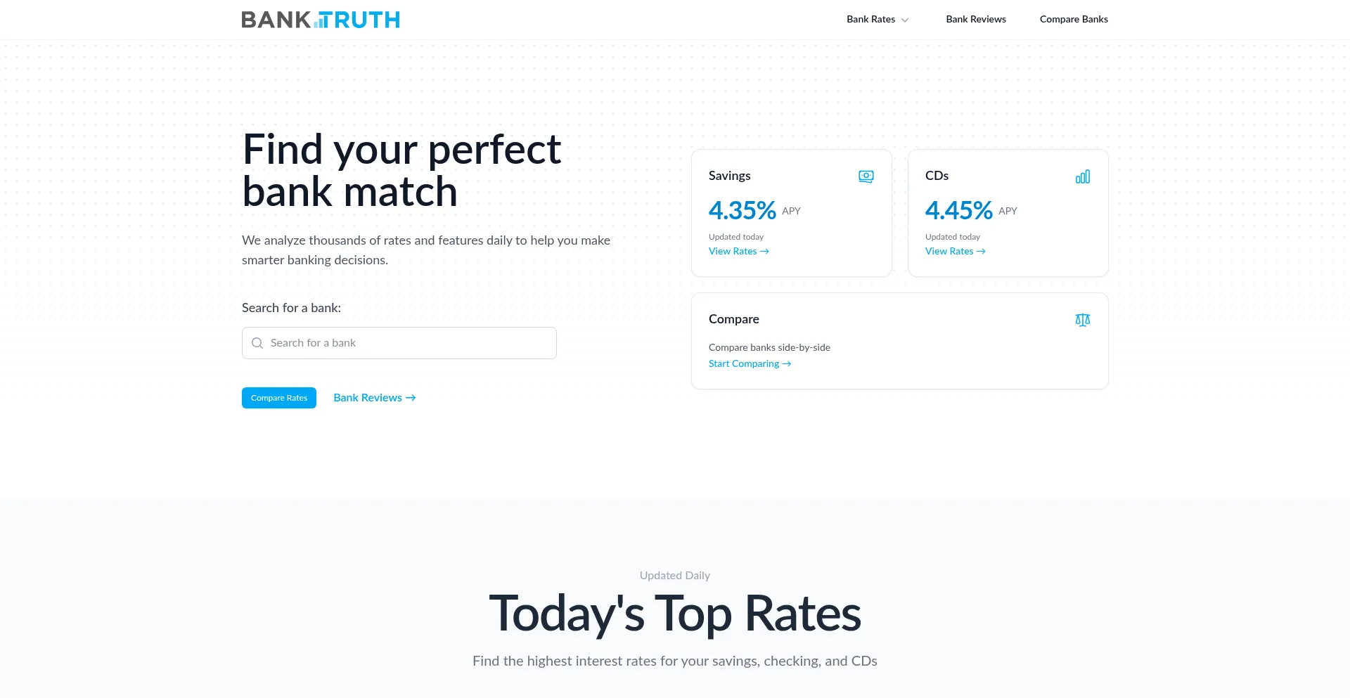 Compare rates, features, and reviews to find the best bank for your needs. We analyze thousands of banks daily to help you make smarter financial decisions.