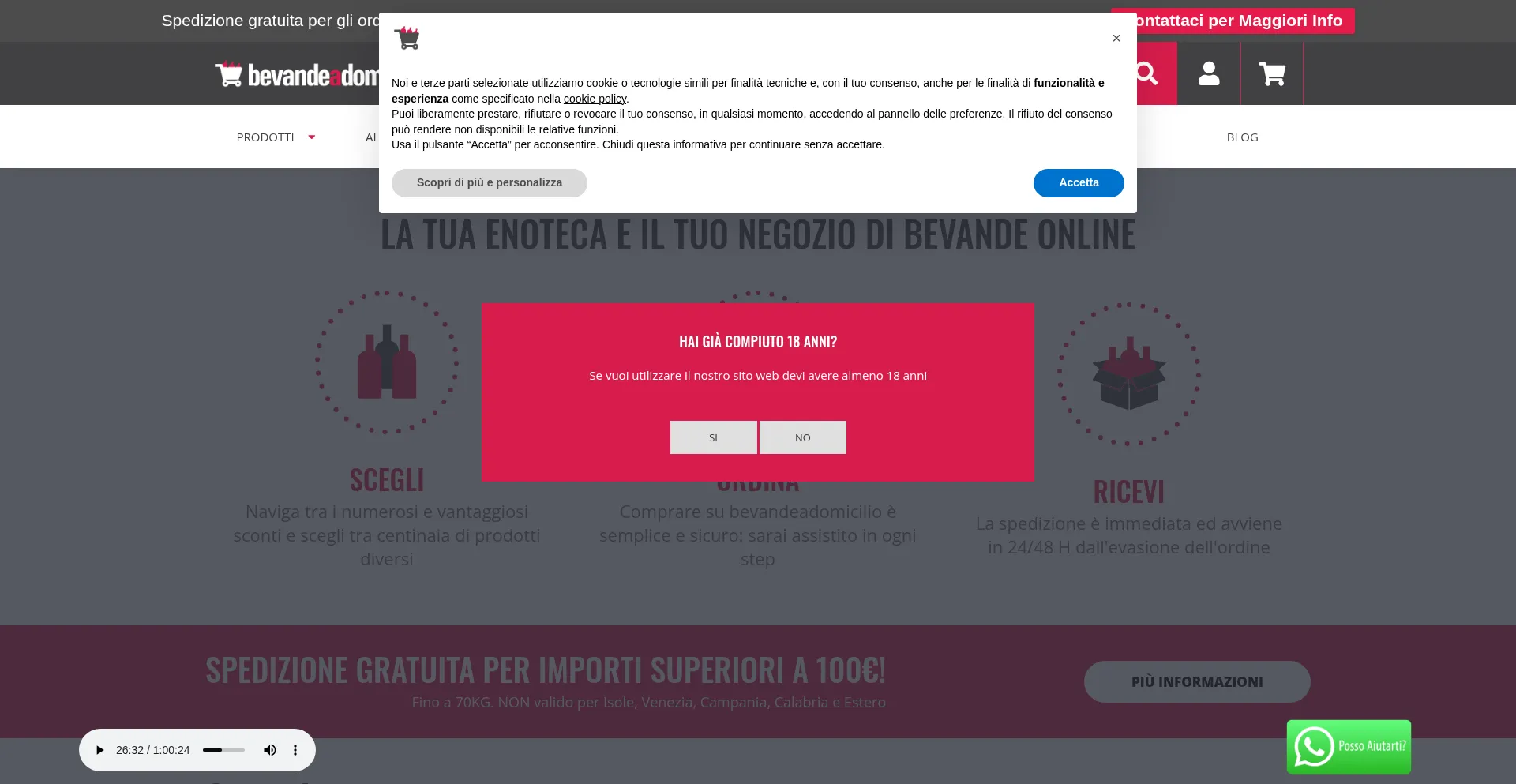 Vendita online e consegna a domicilio di bevande, bibite, vini ed alcolici: scopri le innumerevoli offerte e la spedizione gratuita per ordini maggiori di 100€!