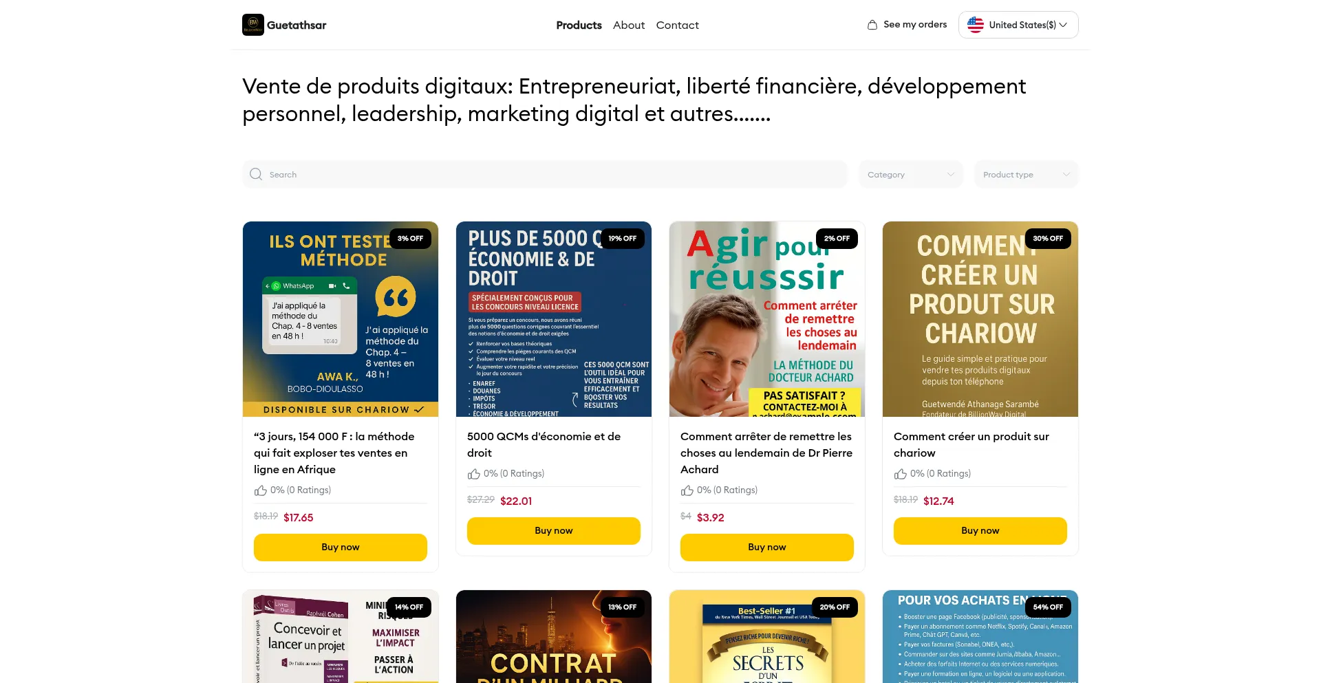 Vente de produits digitaux: Entrepreneuriat, liberté financière, développement personnel, leadership, marketing digital et autres.......