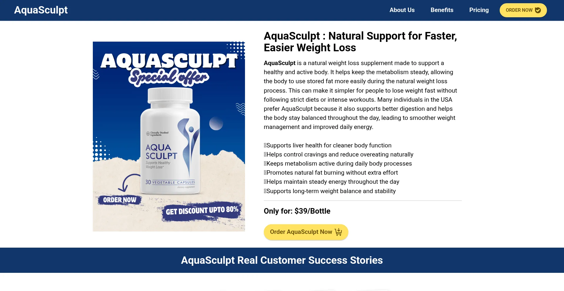 AquaSculpt is a natural weight loss supplement that boosts metabolism, reduces cravings, and helps you lose weight fast while making daily weight loss progress.