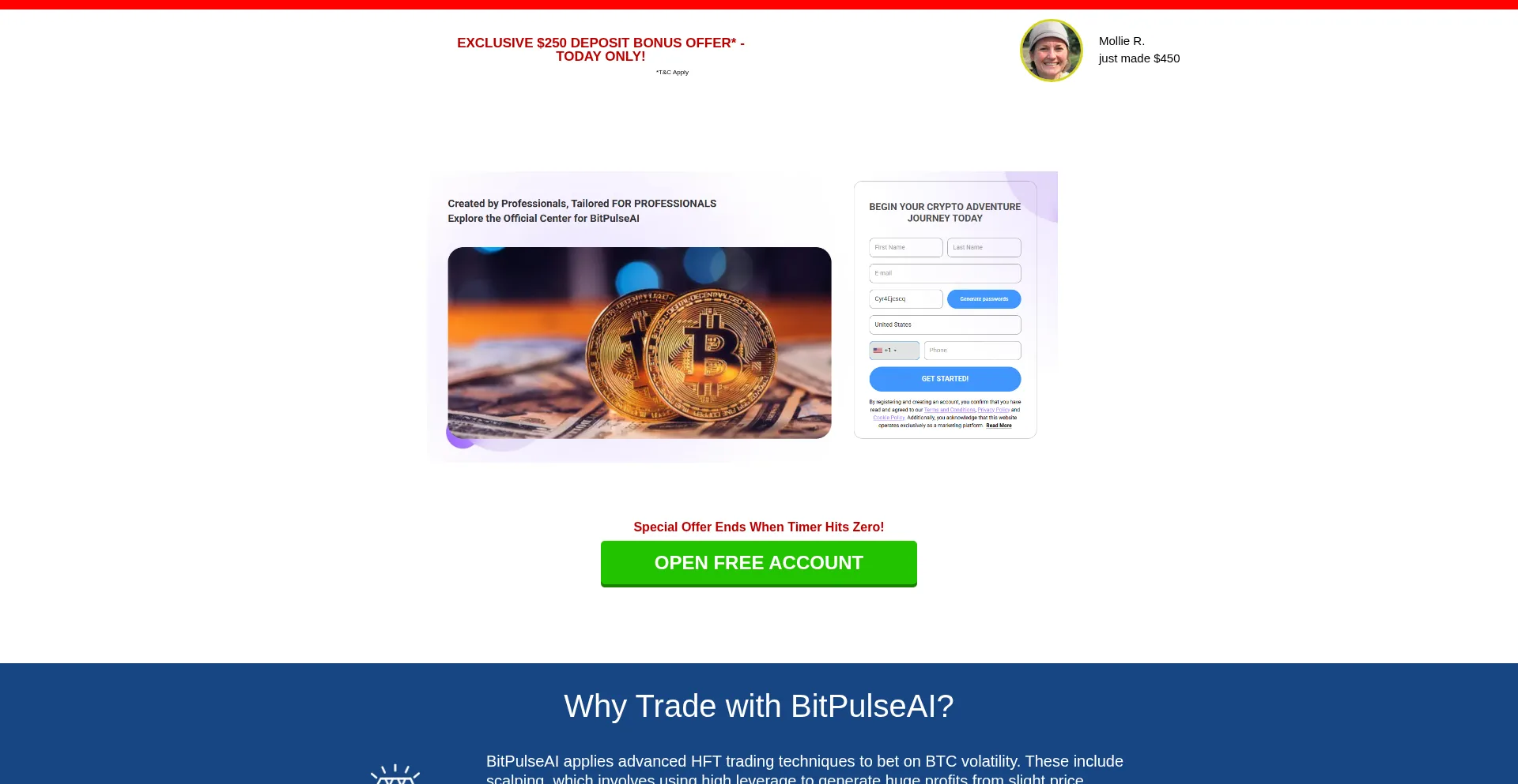 BitPulseAI is an automated trading platform using state-of-the-art algorithm to help you win the market. Sign-up today to get $250 deposit bonus.