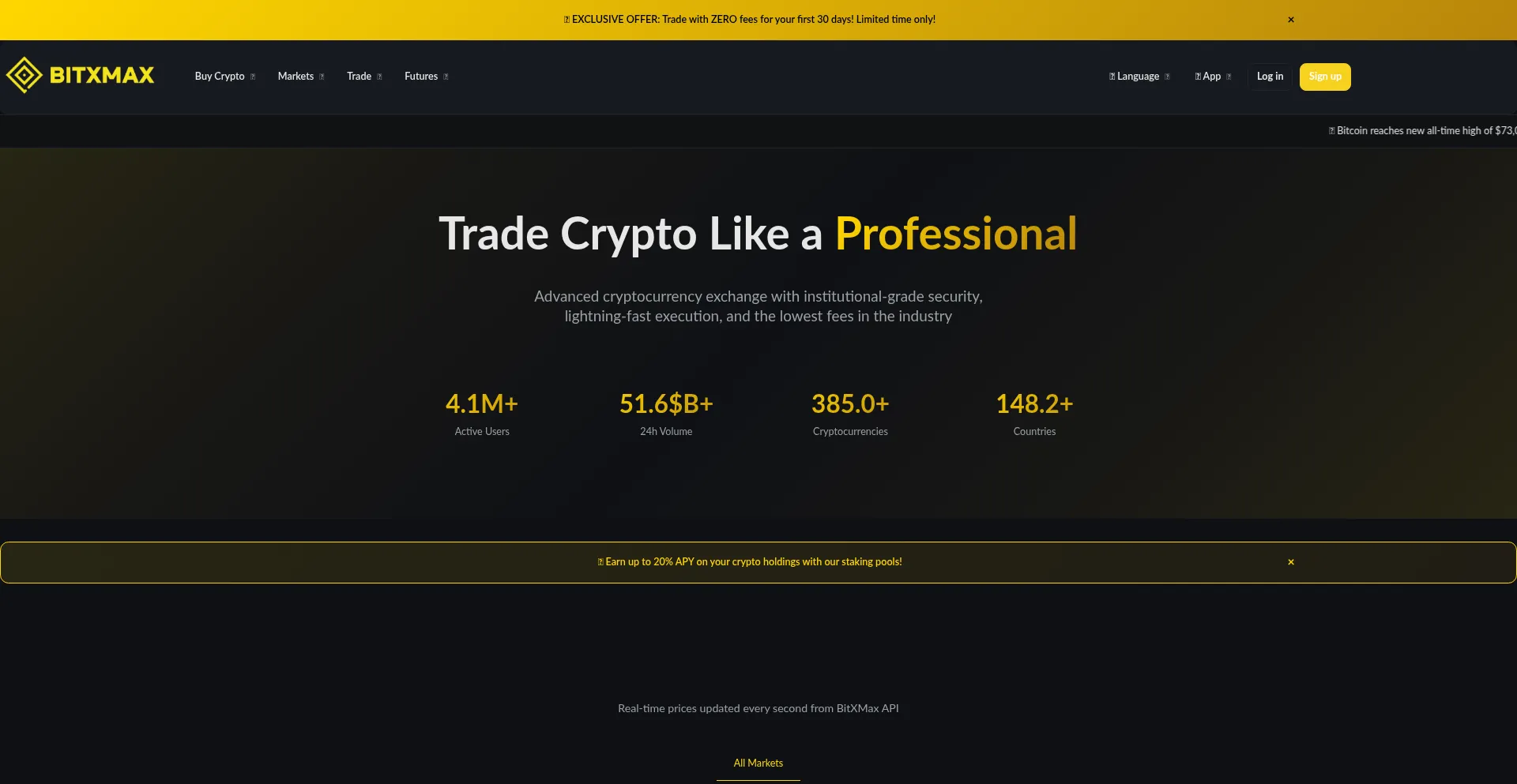 BitXMax - Professional cryptocurrency exchange with 0.1% fees, advanced trading tools, bank-grade security. Trade Bitcoin, Ethereum, and 500+ cryptocurrencies. Join 5M+ users wo...