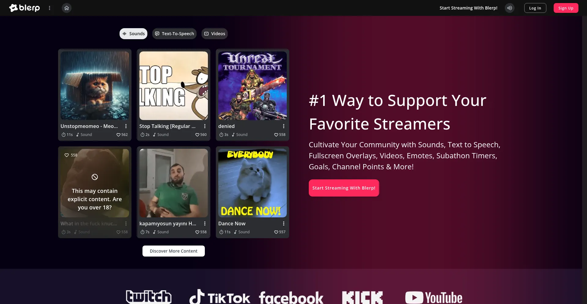 Viewers love supporting streamers through Blerp.. Blerp has a million funny sound memes, videos, emotes, and soundboards for you to share on Kick, Twitch, Discord, Trovo, Facebo...