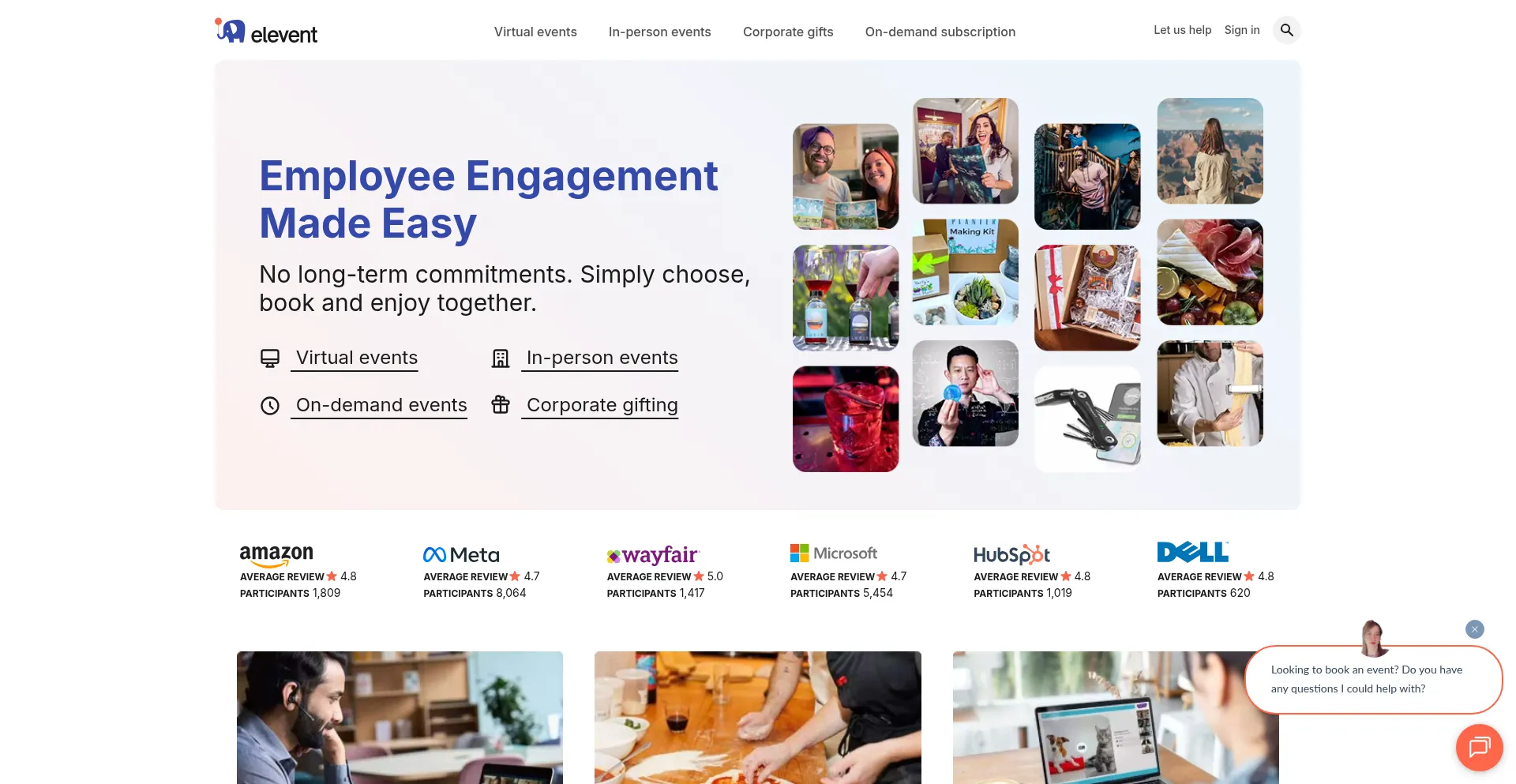 With over 1000+ different team building events to choose from, you're sure to find an event your team or clients will love. Elevent makes booking events easy.