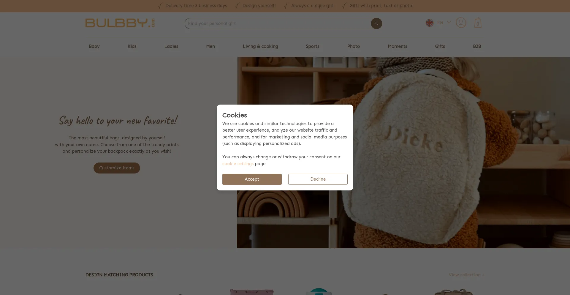 At Bulbby you can find great personalized gifts for all ages. Whether it's a baby gift, birthday gift, mother's day gift, father's day gift or Valentine's day gift.