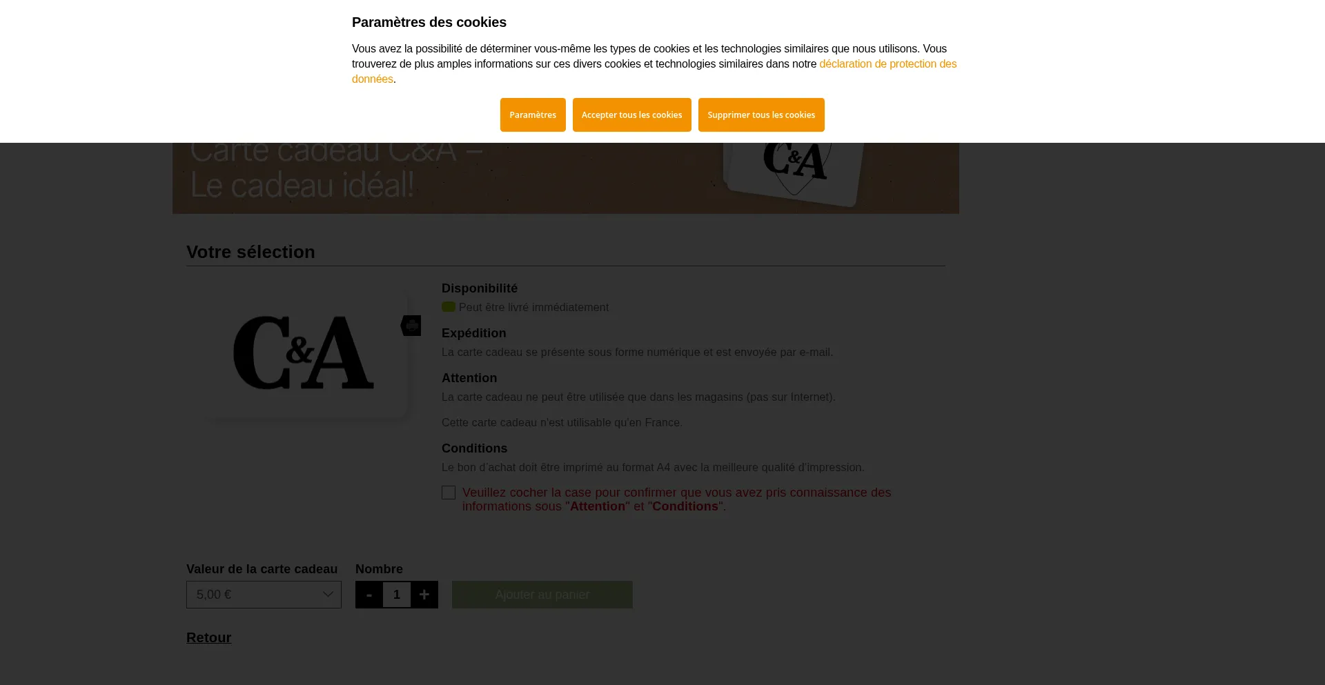 Carte cadeau C&A