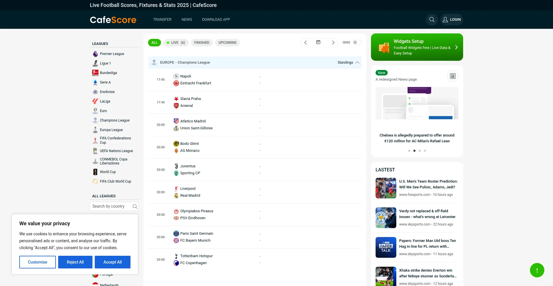 Live Football Scores, Fixtures & Stats 2025 | CafeScore