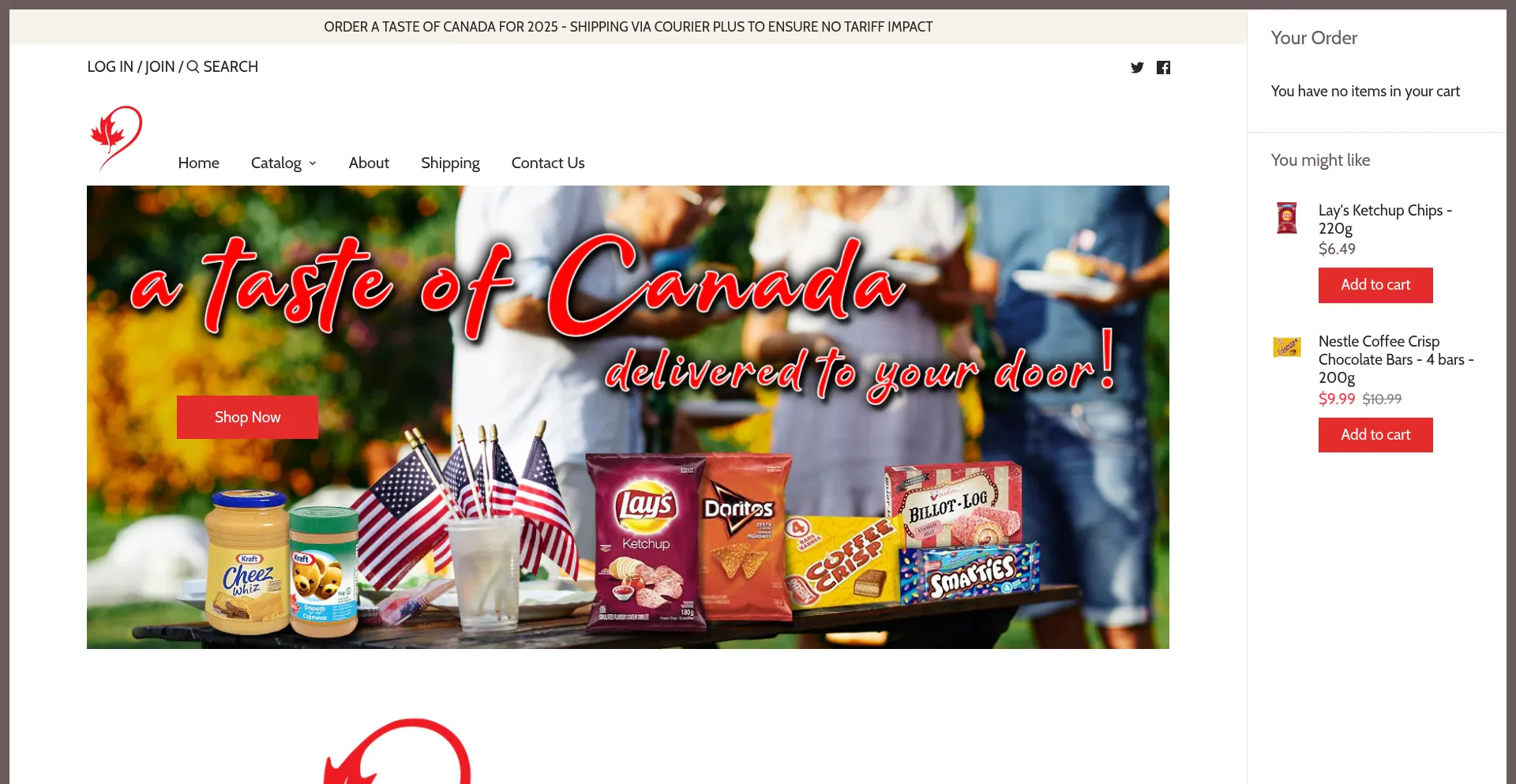 CanadianCatalog.com is the leading online retailer of Canadian products to the world. Order your favourite Canadian treats in US dollars and have them delivered domestically - o...