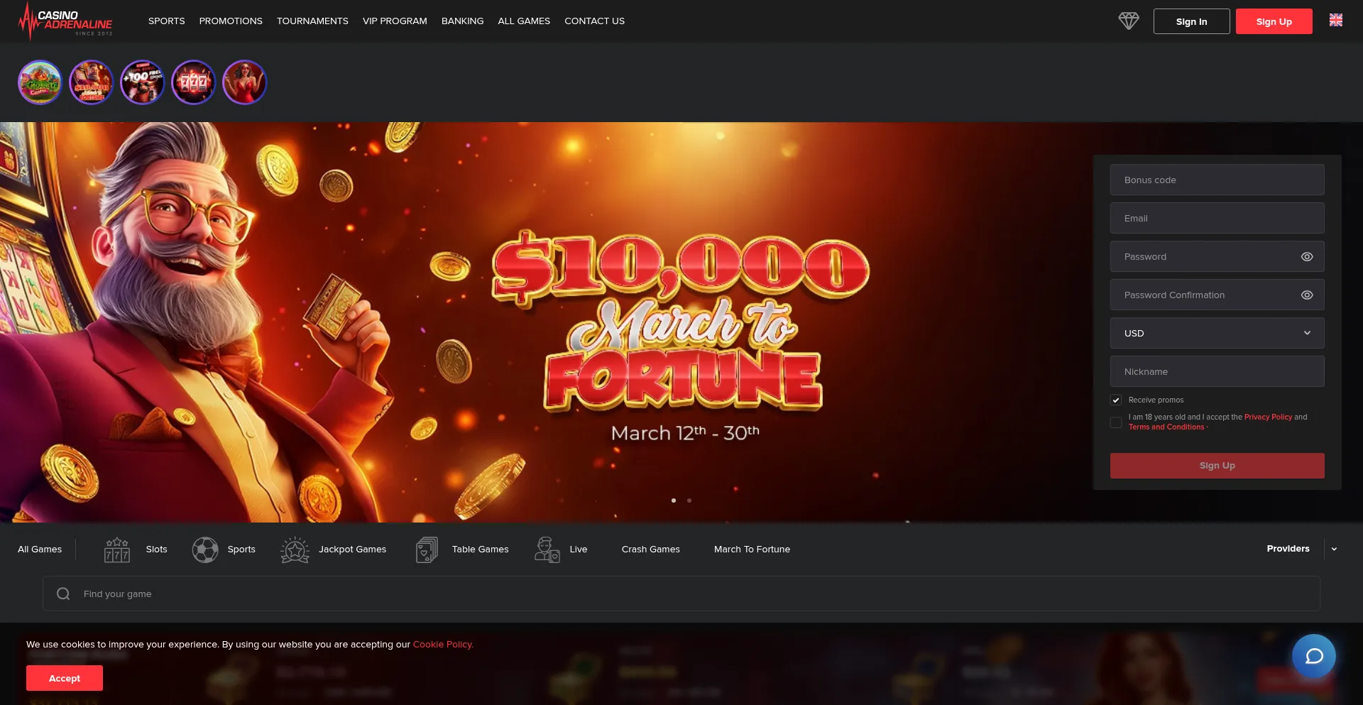 Sign up at Casino Adrenaline and claim your generous welcome bonus! Enjoy top-notch games from various providers, instant crypto payments, and exciting promotions.