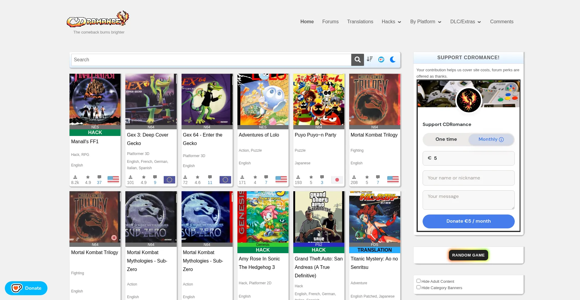 CDRomance é um site que oferece uma coleção de ROMs e ISOs de videogames retrô para vários consoles de jogos.