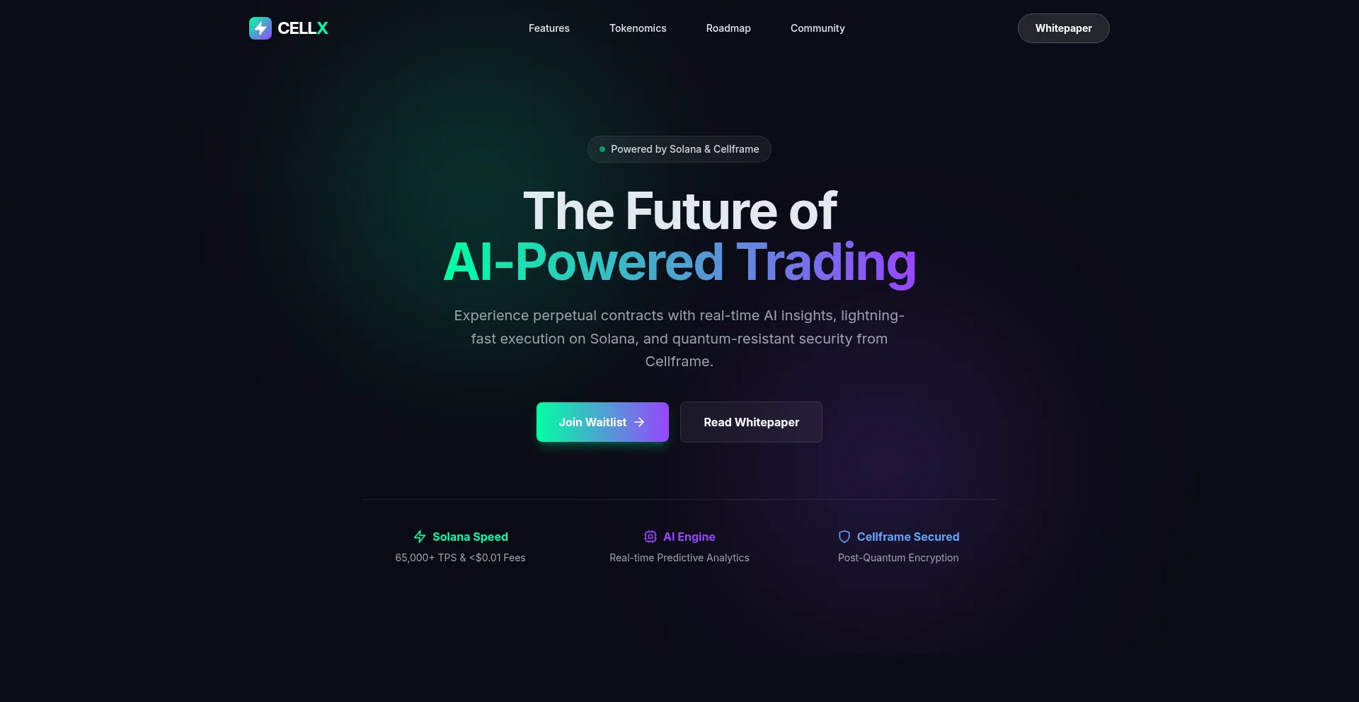 AI powered trading. Experience perpetual contracts with real-time AI insights, lightning-fast execution on Solana, and quantum-resistant security from Cellframe.