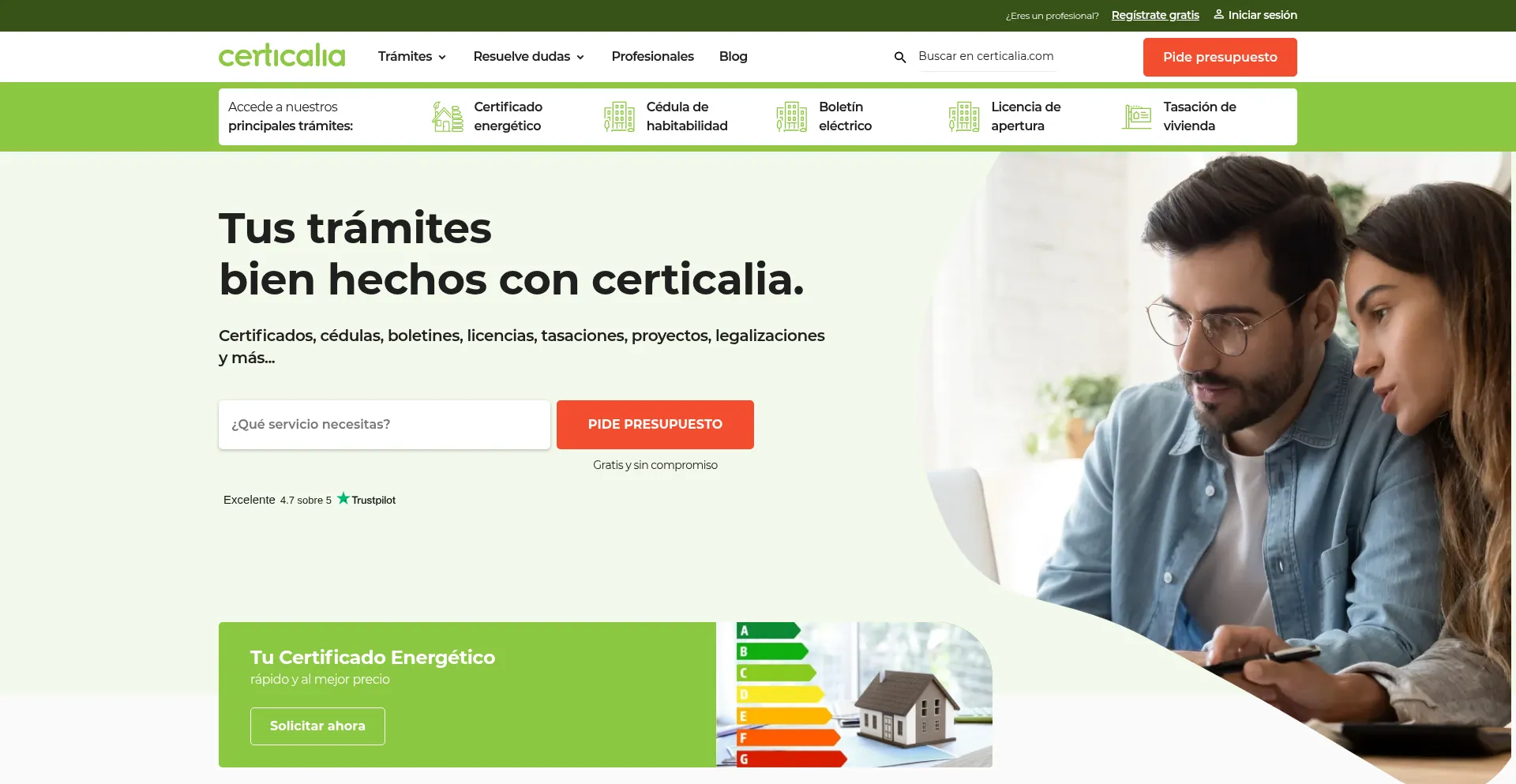 Realiza todas tus gestiones cómodamente desde casa con Certicalia. Solicita presupuestos y contrata uno de nuestros profesionales de manera rápida y segura.
